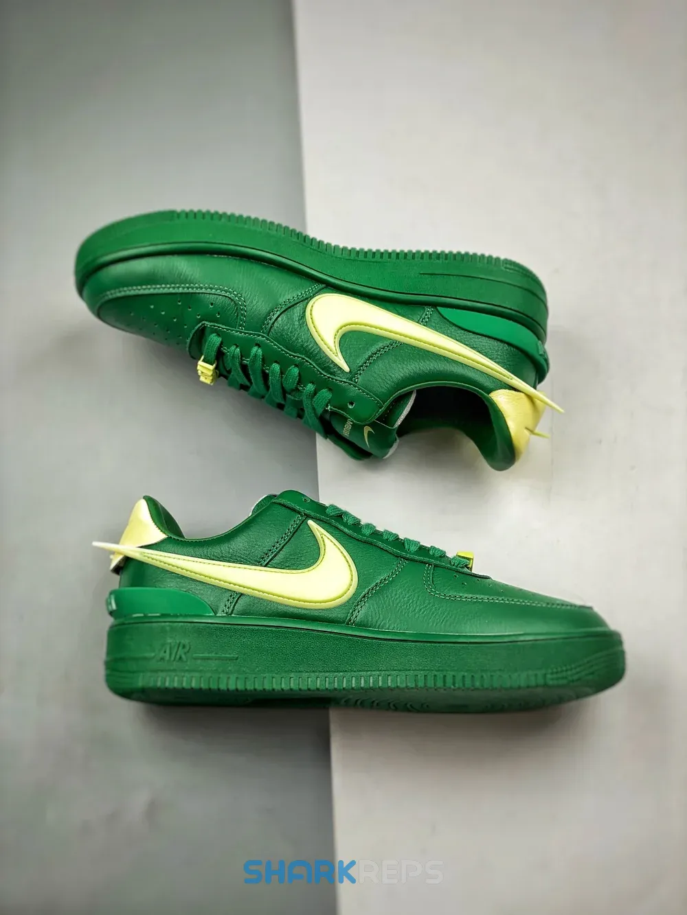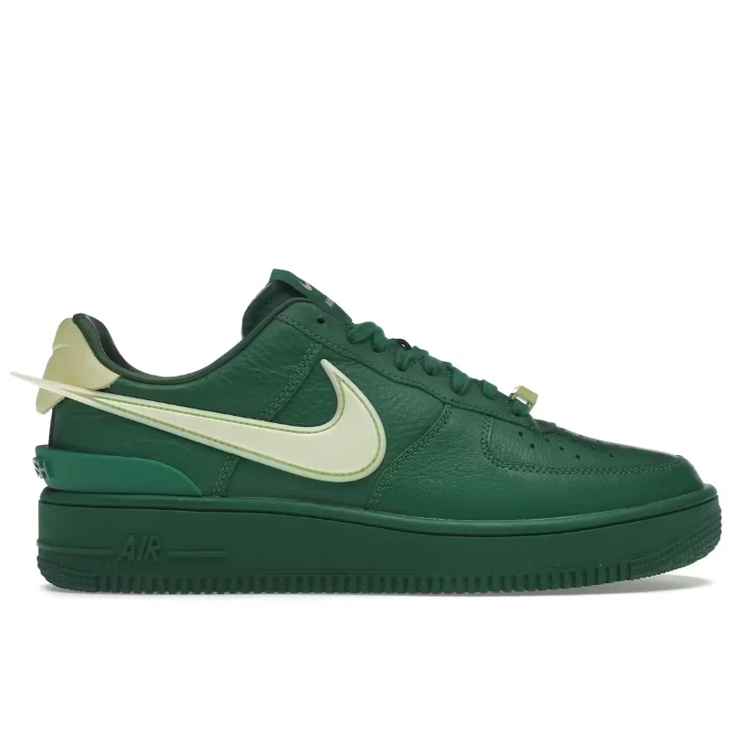 The AMBUSH x Nike Air Force 1 Low ‘Pine Green’ continues the partner brands’ creative partnership with a lush and stylish take on the legacy silhouette. Green textured leather is utilized on the upper, which combines heritage details — including variable width lacing and a perforated toe box — with a new TPU heel clip and an elongated Swoosh in Citron. The fluorescent hue is repeated on the leather heel tab, ‘AF1’ lace dubrae, and a dual-branded woven tag atop an exposed foam tongue. A matching green rubber cupsole packs encapsulated Air-sole cushioning for a comfortable ride.