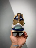 The sacai x Nike VaporWaffle ‘Sesame Blue Void’ reunites the Swoosh with the Tokyo-based fashion label helmed by Chitose Abe. Blending elements from the modern Vaporfly and vintage Pegasus runner from 1983, the hybrid silhouette makes use of a khaki textile upper with tonal leather and suede overlays. A blue leather Swoosh is joined by a larger printed Swoosh in contrasting white. Tongues are similarly doubled up, each accented with a woven Nike tag. The sneaker rides on a dual-layered foam midsole, featuring split heel detailing and supported by a classic waffle tread outsole.