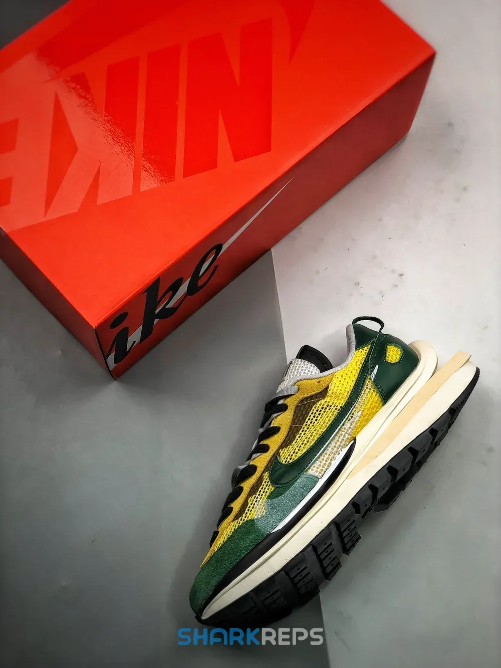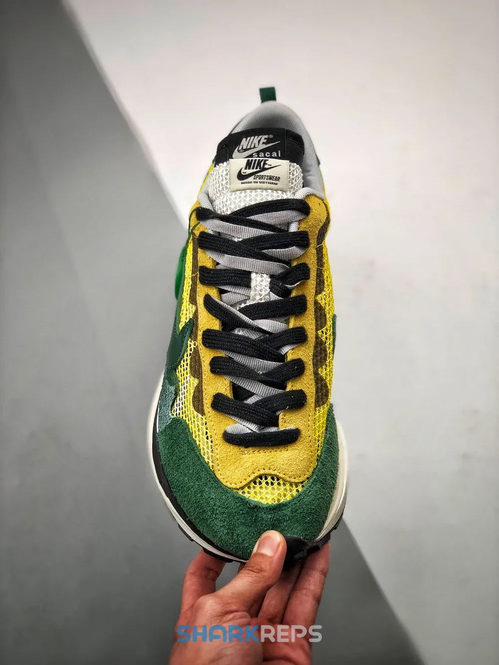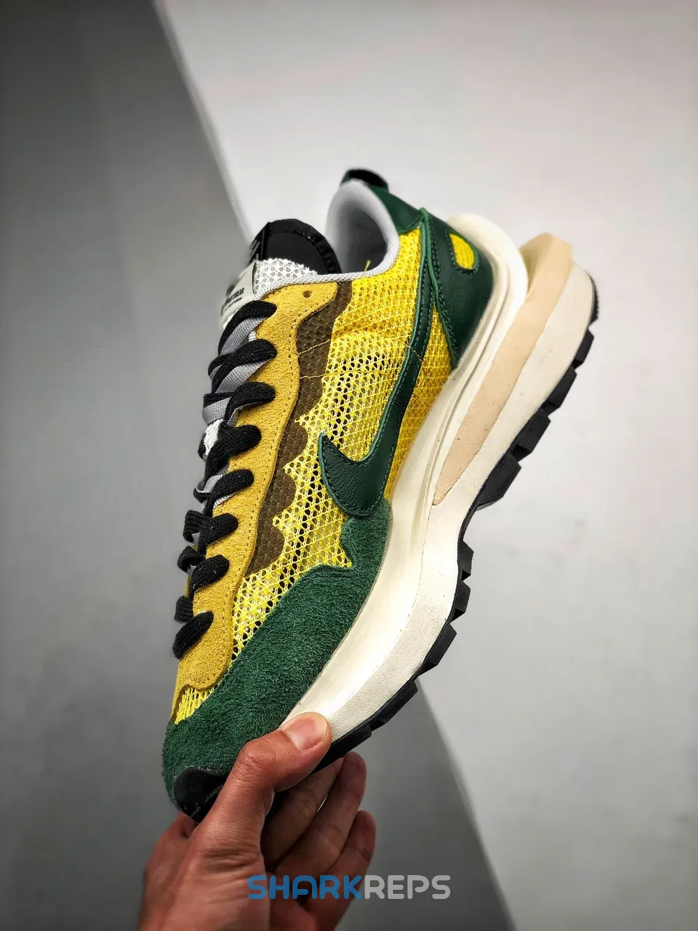Made in partnership with the progressive Japanese fashion label, the Sacai x Nike VaporWaffle ‘Tour Yellow’ picks up from where the brands’ 2019 LDV Waffle collaboration left off. Like its predecessor, this pair doubles up on the tongue, laces and Swoosh branding. A breathable yellow mesh build, fortified with teal overlays in leather and suede, rides on a stacked midsole with split construction at the heel. Nike’s signature waffle outsole delivers grippy traction.