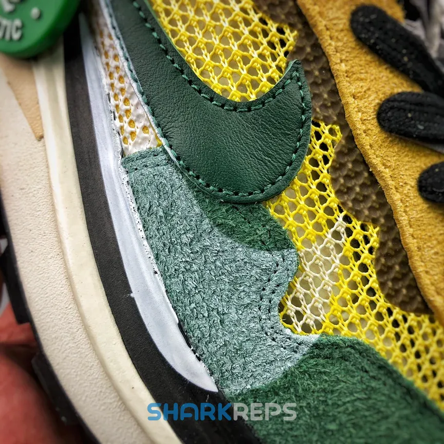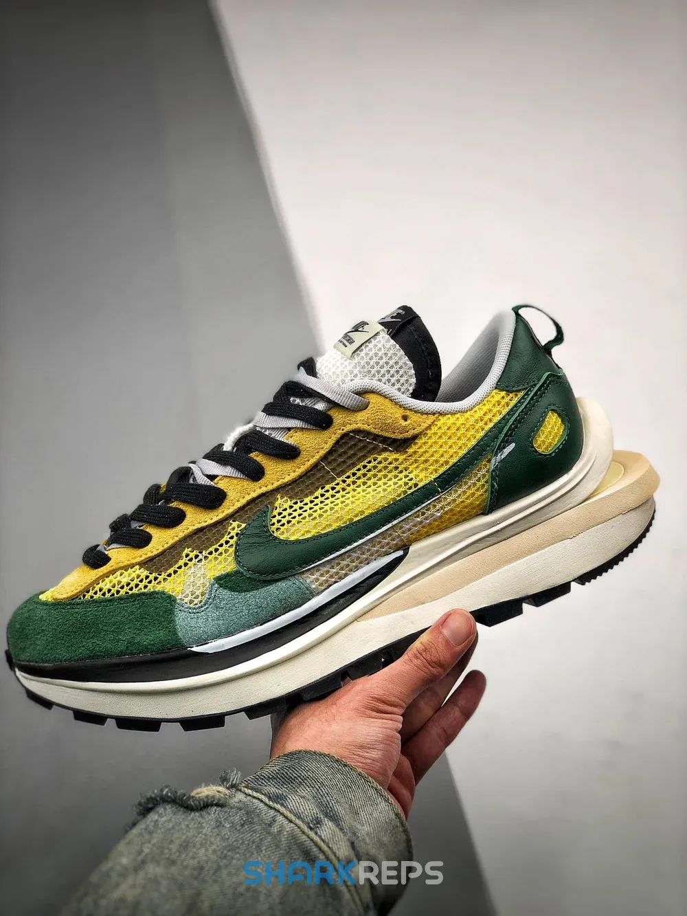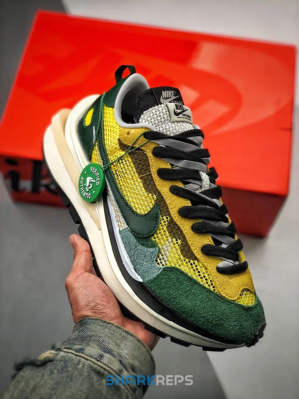 Made in partnership with the progressive Japanese fashion label, the Sacai x Nike VaporWaffle ‘Tour Yellow’ picks up from where the brands’ 2019 LDV Waffle collaboration left off. Like its predecessor, this pair doubles up on the tongue, laces and Swoosh branding. A breathable yellow mesh build, fortified with teal overlays in leather and suede, rides on a stacked midsole with split construction at the heel. Nike’s signature waffle outsole delivers grippy traction.