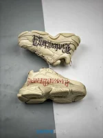Featuring a triple-stacked sole, the Triple S delivers bold proportions and maximum comfort. The upper blends mesh, leather, and synthetic materials for a layered, deconstructed look, while subtle distressing gives it a vintage vibe. Embroidered size detailing on the toe and Balenciaga branding on the side complete the signature design.