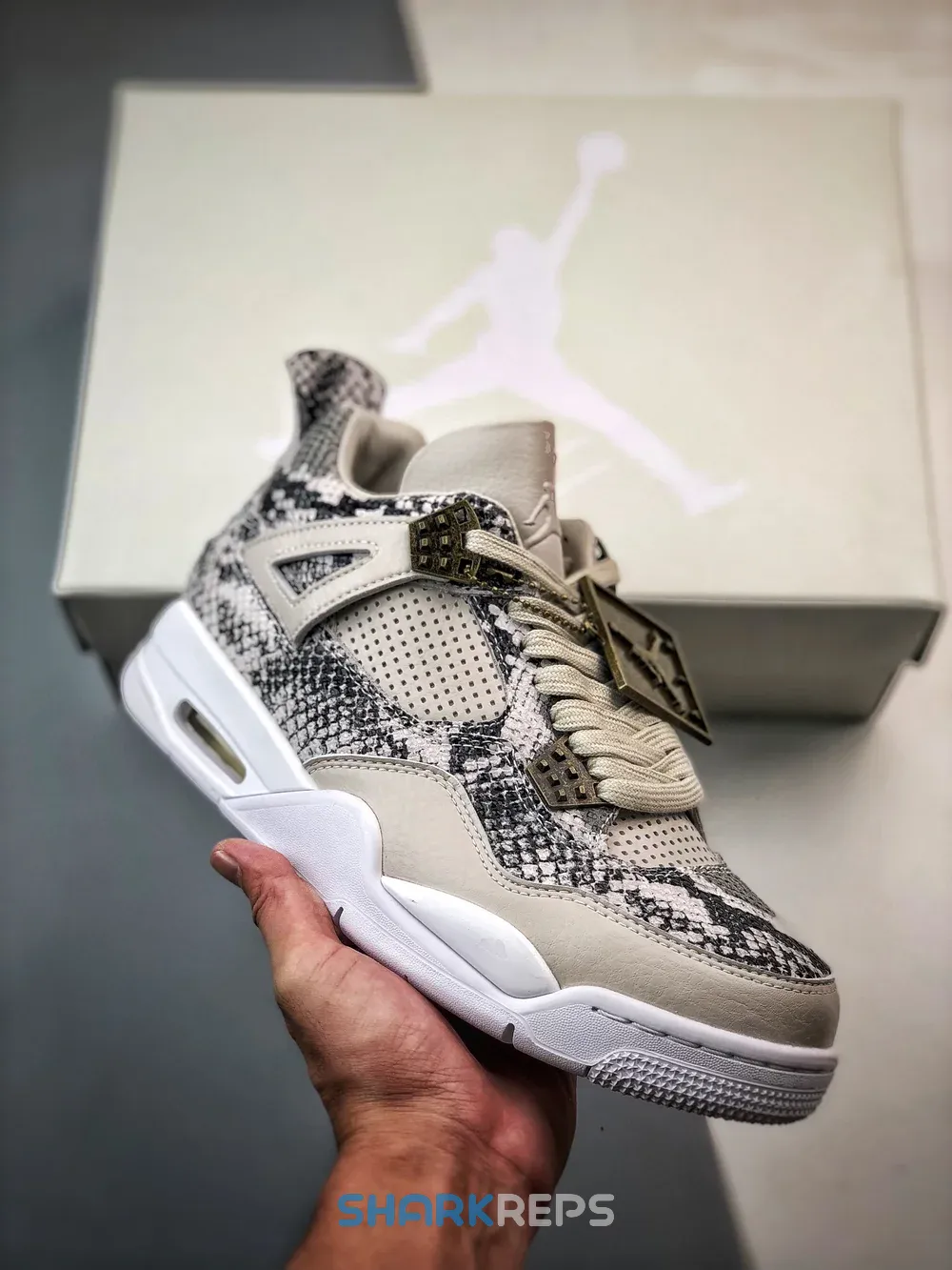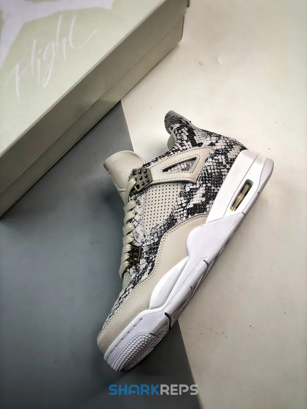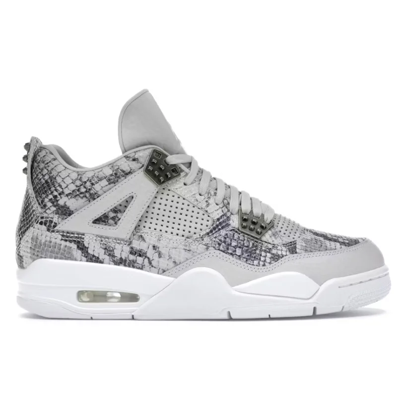 The Air Jordan 4 Retro Premium ‘Snakeskin’ combines a Snakeskin upper with a tumbled light bone leather mudguard and tongue. Released in May of 2016, the design also includes wax laces, copper eyelets, copper heel studs, and an all white sole. The Jordan Brand also released an Air Jordan Retro Premium ‘Black’ sneaker around the same time.