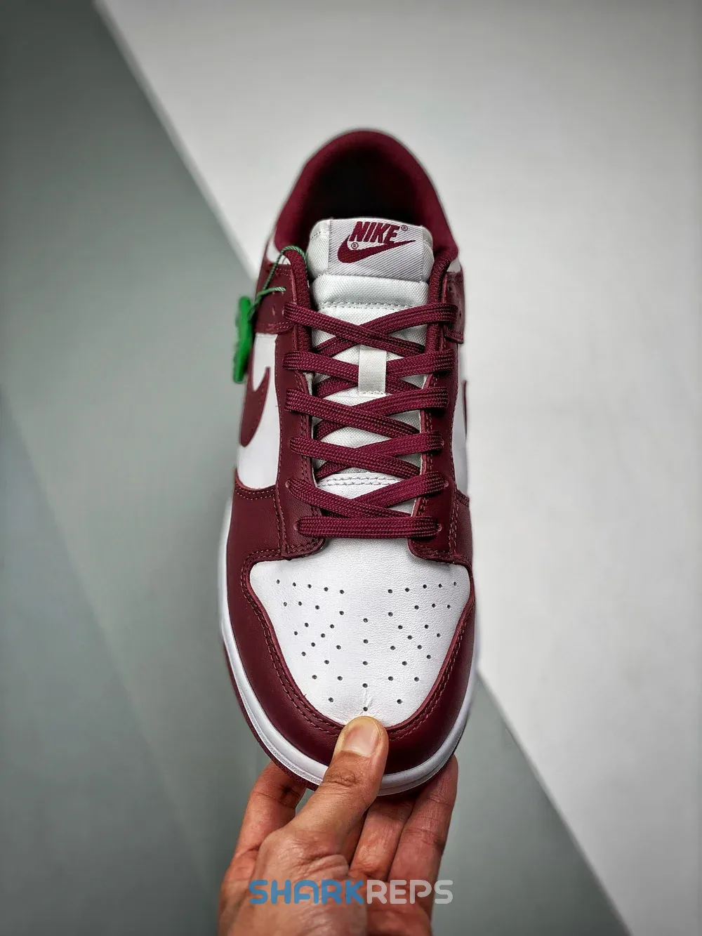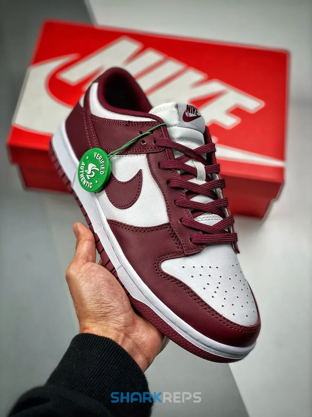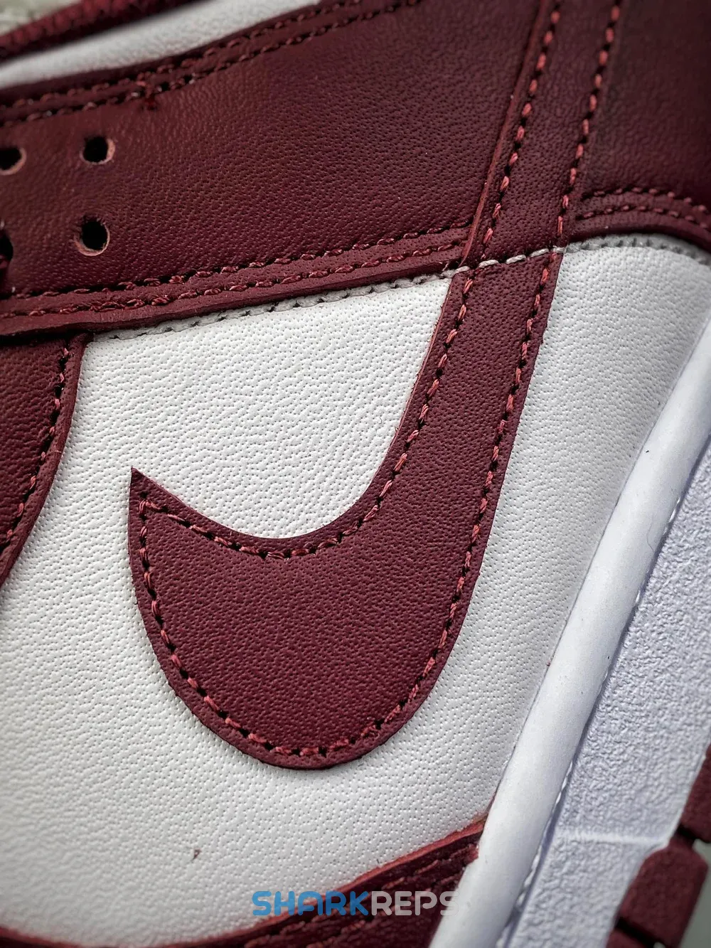 The Nike women’s Dunk Low ‘Dark Beetroot’ steps out in a two-tone color scheme redolent of the shoe’s OG ‘Be True to Your School’ series from 1985. The all-leather upper pairs a white base with burgundy overlays at the forefoot and heel. The rich hue registers repeat appearances on the Swoosh, mesh collar lining and Nike-embroidered heel tab. Additional Nike branding elements decorate the sockliner and woven tongue tag. The low-top is mounted on a sturdy rubber cupsole, featuring white sidewalls and a maroon rubber outsole.