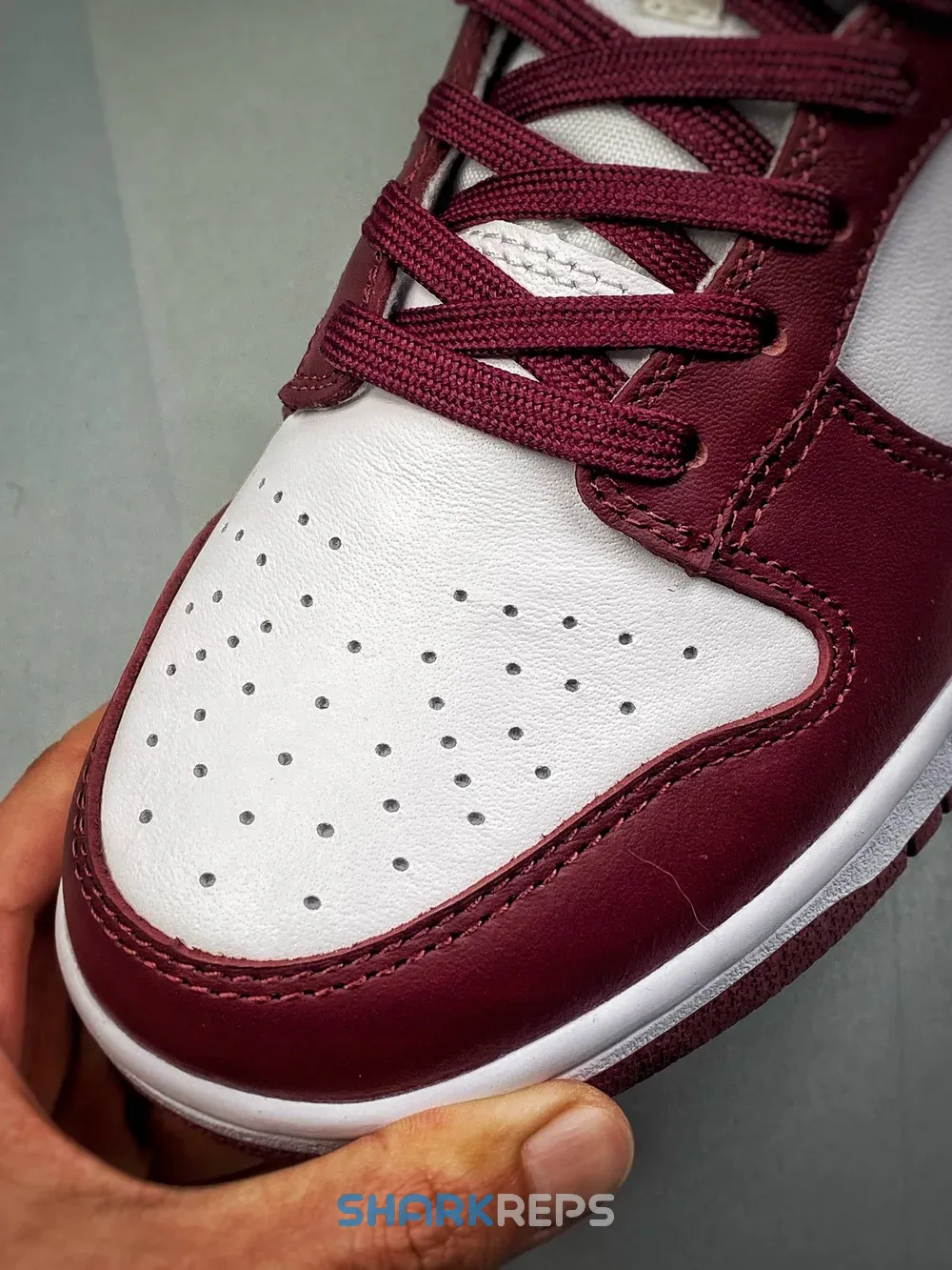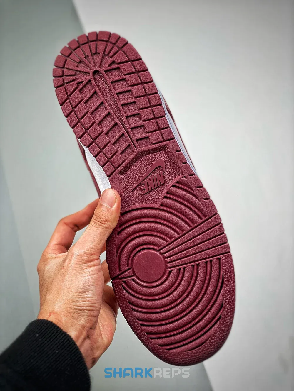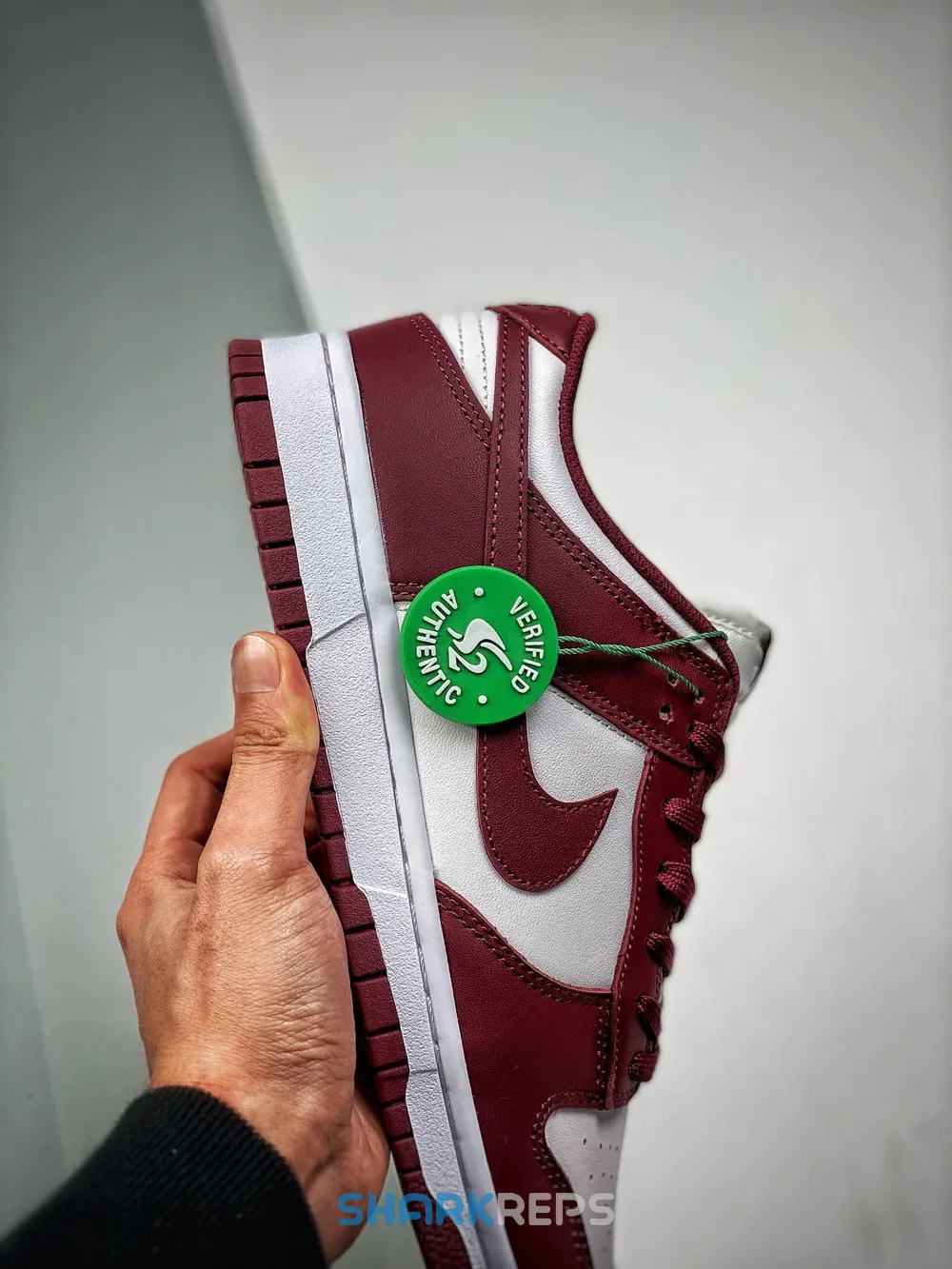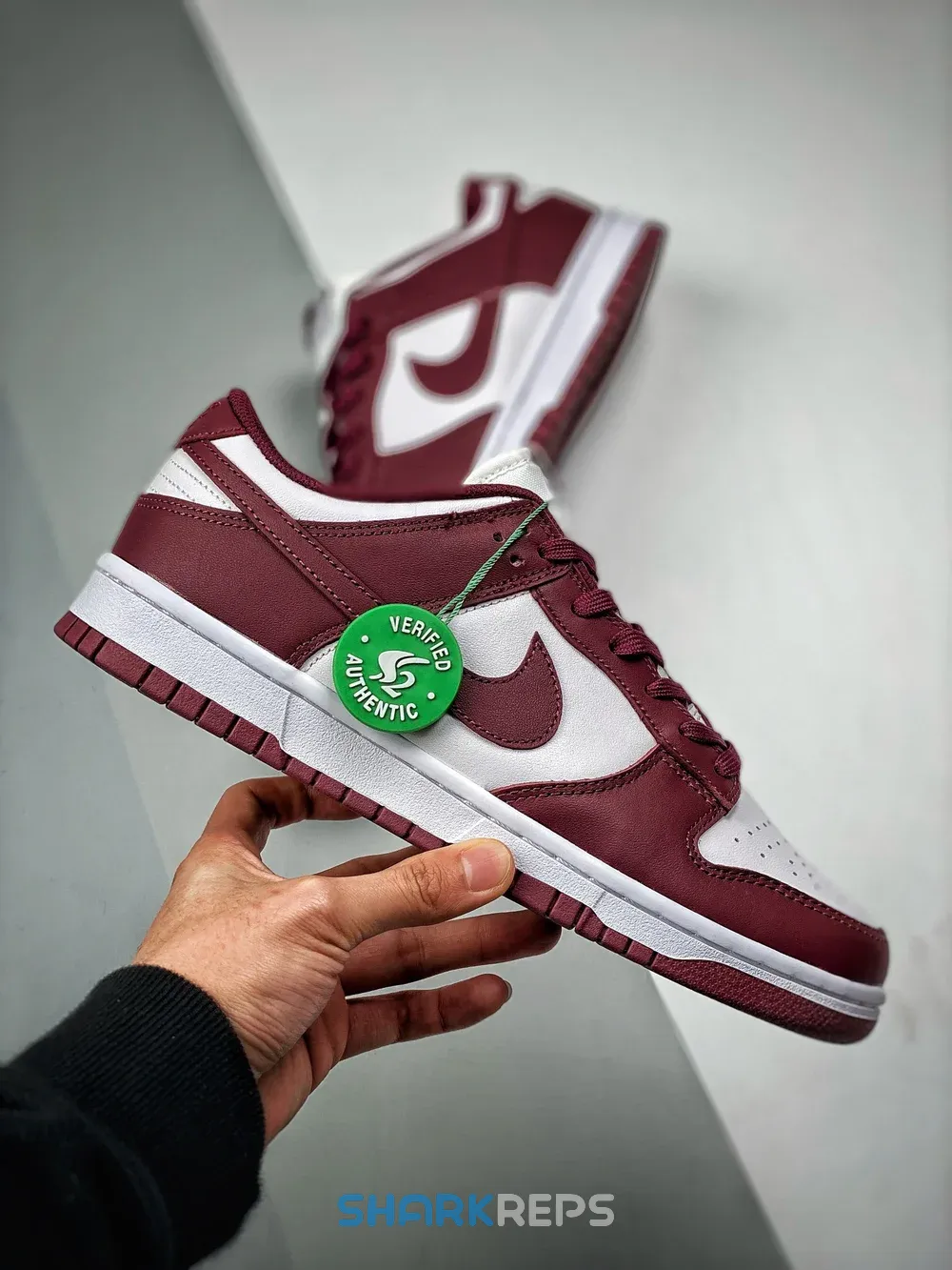 The Nike women’s Dunk Low ‘Dark Beetroot’ steps out in a two-tone color scheme redolent of the shoe’s OG ‘Be True to Your School’ series from 1985. The all-leather upper pairs a white base with burgundy overlays at the forefoot and heel. The rich hue registers repeat appearances on the Swoosh, mesh collar lining and Nike-embroidered heel tab. Additional Nike branding elements decorate the sockliner and woven tongue tag. The low-top is mounted on a sturdy rubber cupsole, featuring white sidewalls and a maroon rubber outsole.