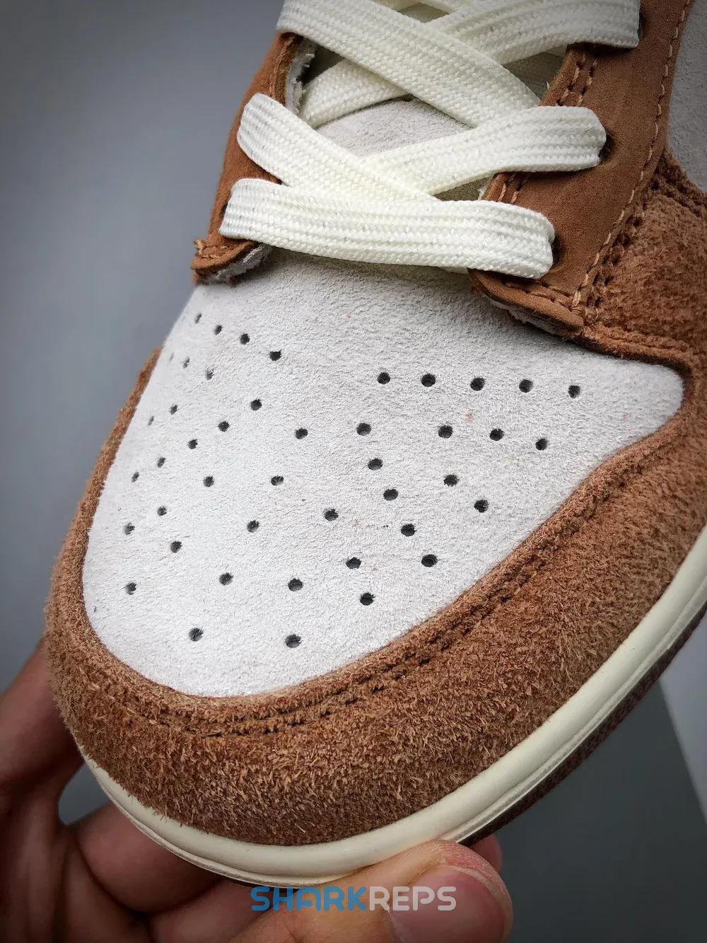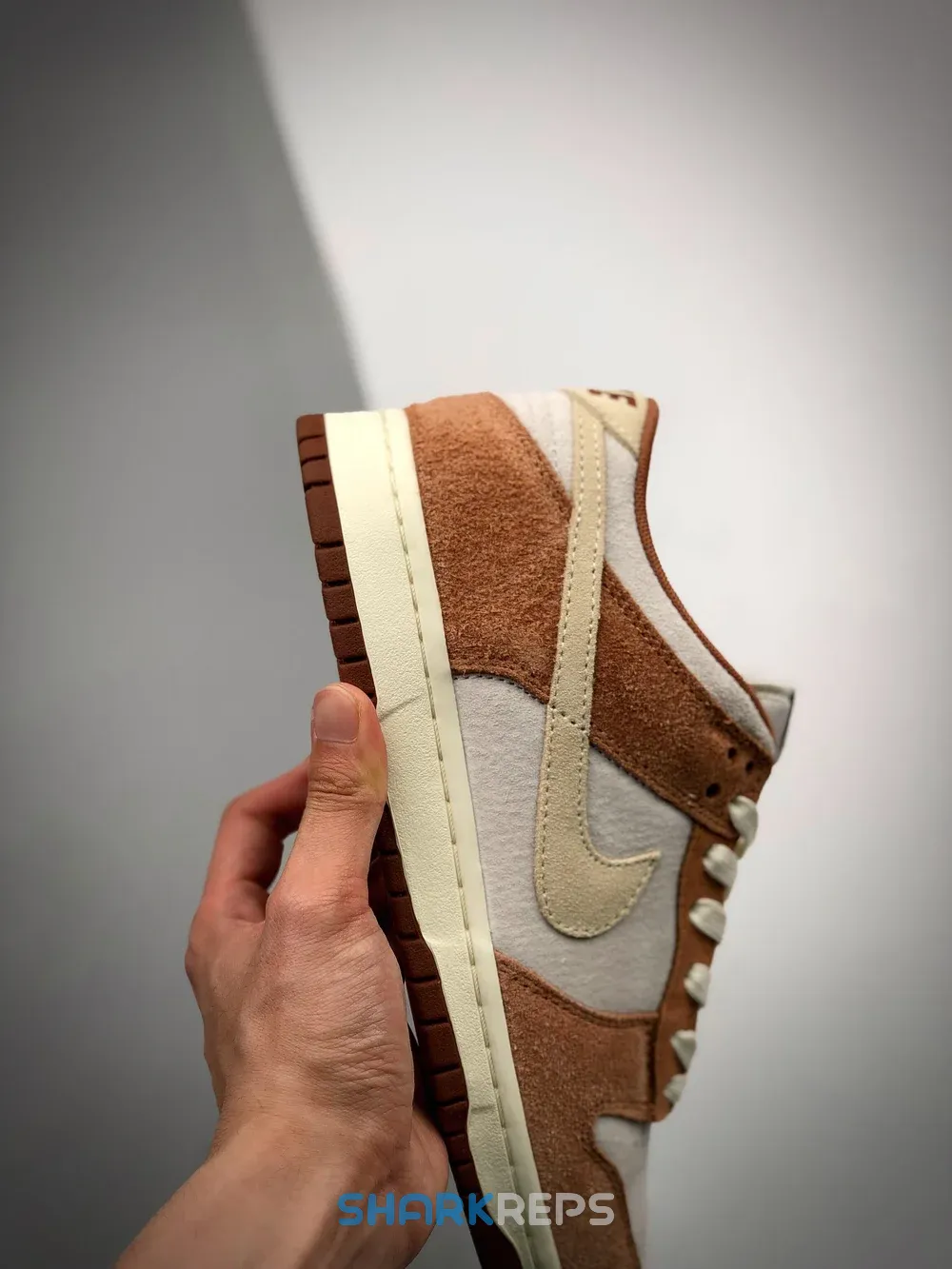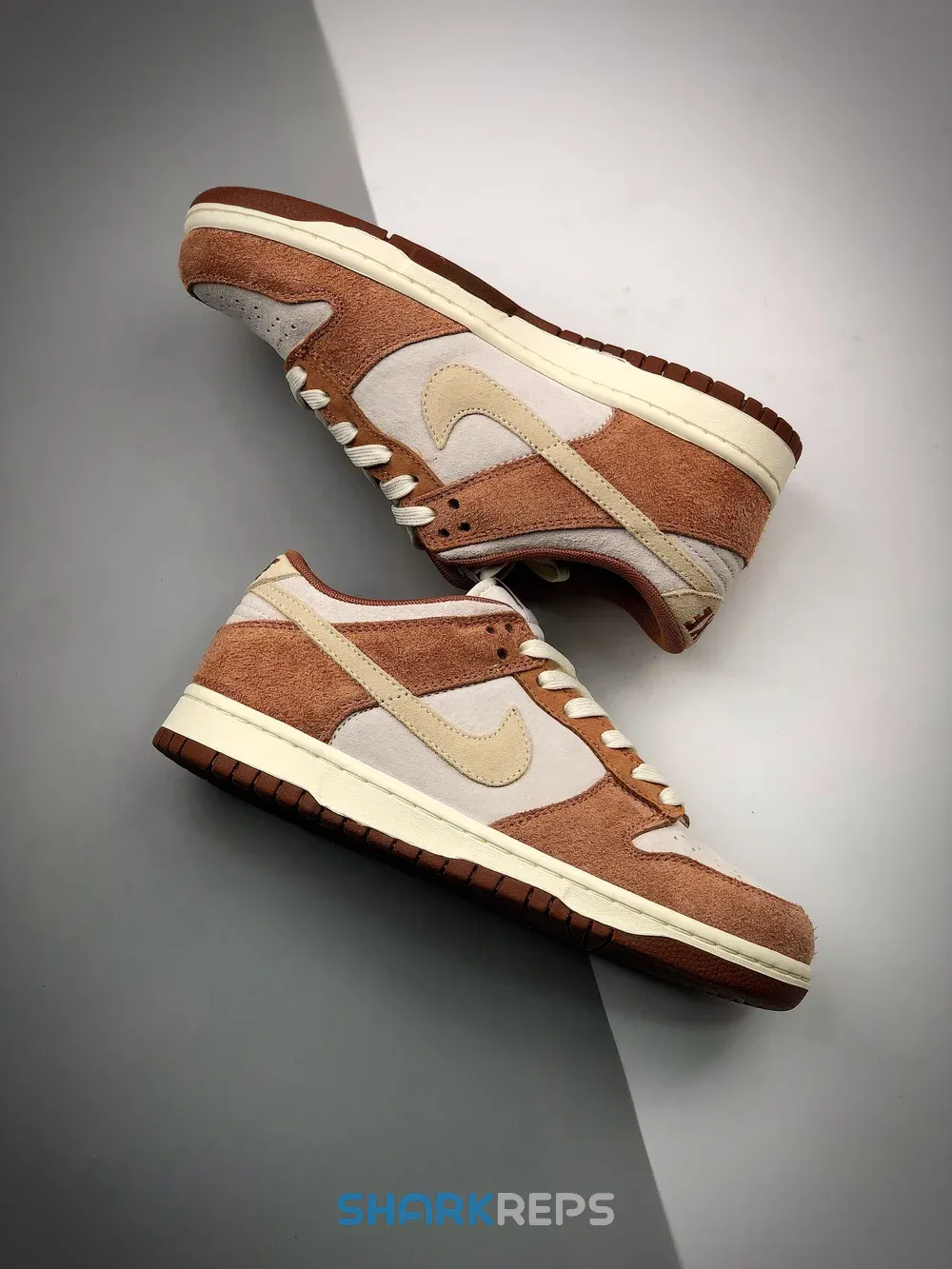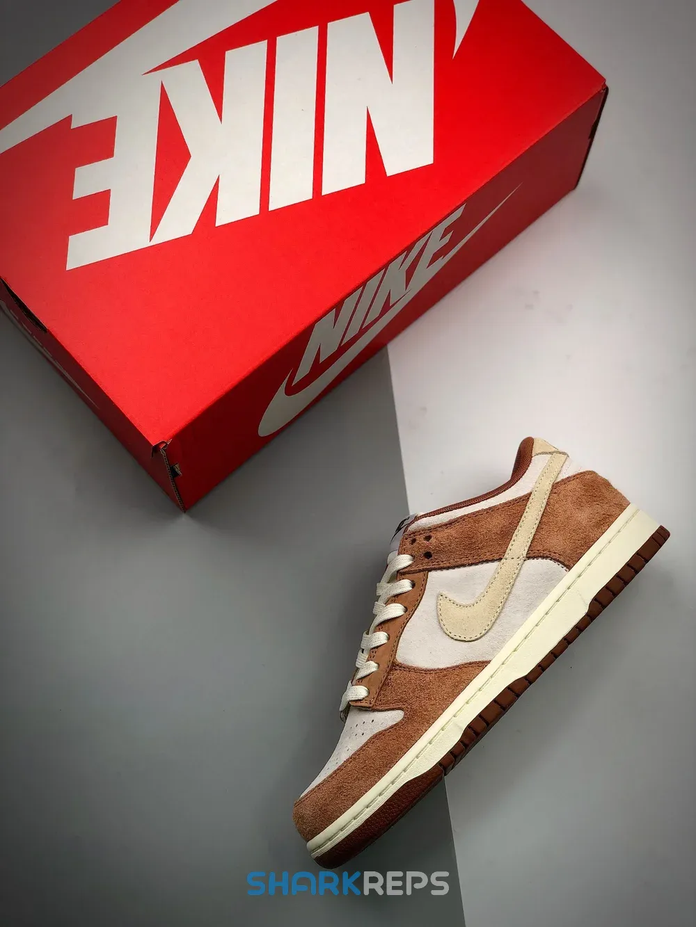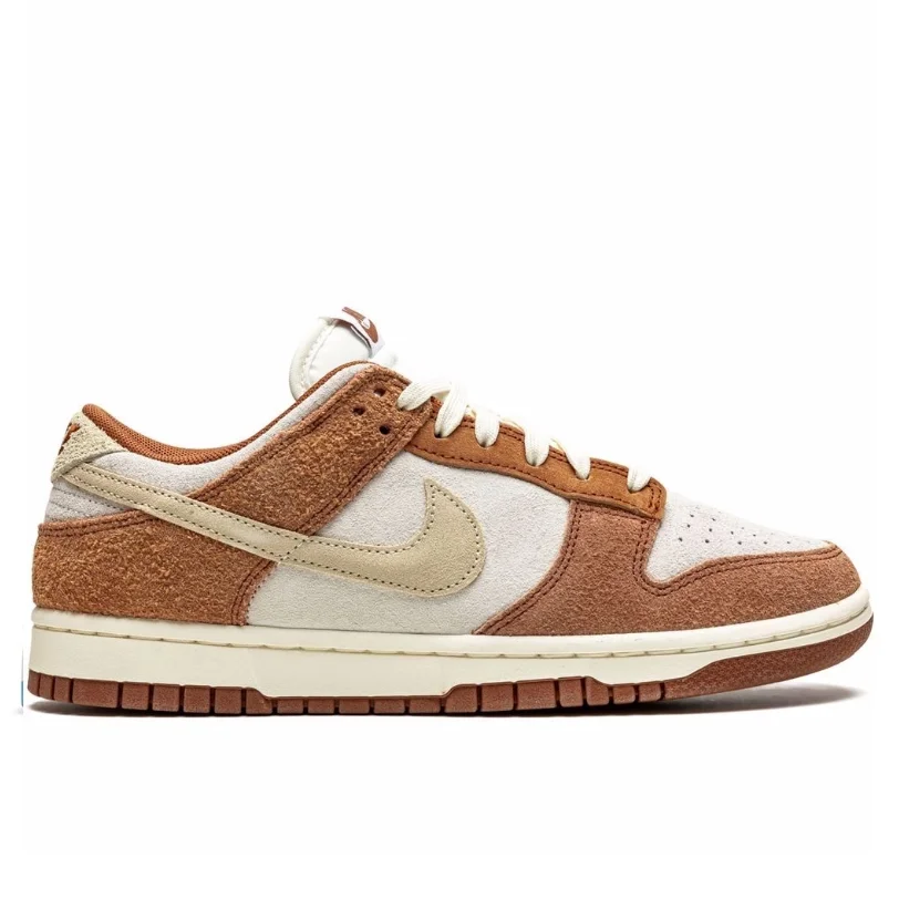 The Nike Dunk Low Premium ‘Medium Curry’ dresses the retro silhouette in a suede upper finished in warm, autumnal hues. A cream-hued base is contrasted by curry brown overlays at the toe and heel, while Fossil coloring is applied to the Swoosh and heel tab, the latter marked with traditional Nike branding. The low-top rides on a durable rubber cupsole, featuring a grippy traction pattern virtually identical to another mid ‘80s hoops shoe, the Air Jordan 1.
