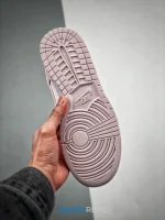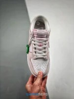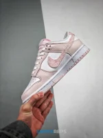The Nike Women’s Dunk Low ‘Pink Paisley’ updates the heritage hoops shoe with pastel accents and refreshed branding. The low-profile silhouette sports a leather upper that combines a stark white base with soft pink overlays at the forefoot and heel. Paisley-print textile is utilized on the signature Swoosh and Nike-branded heel tab. The sneaker sits atop a white midsole, featuring stitched sidewall construction and an interior foam wedge. A pink rubber outsole provides durable traction underfoot.