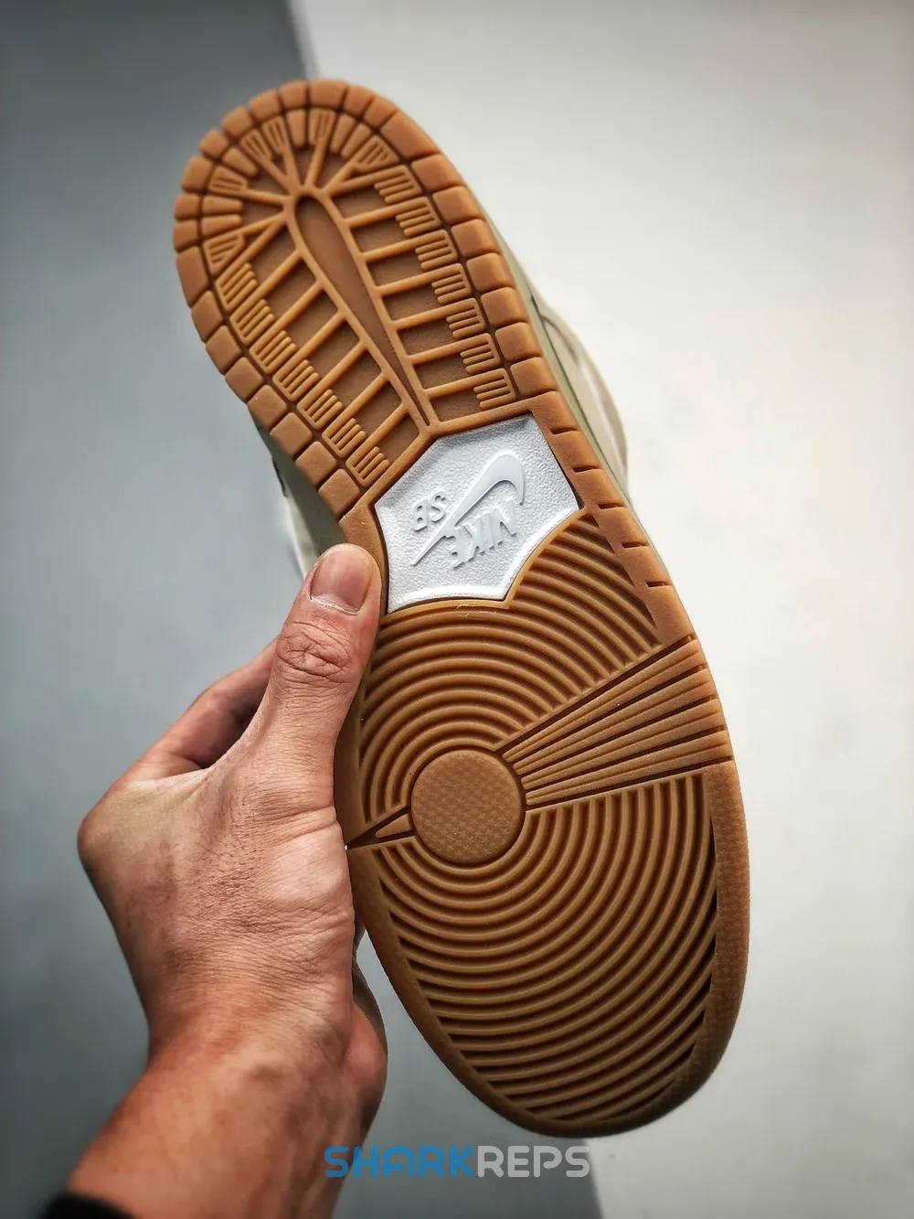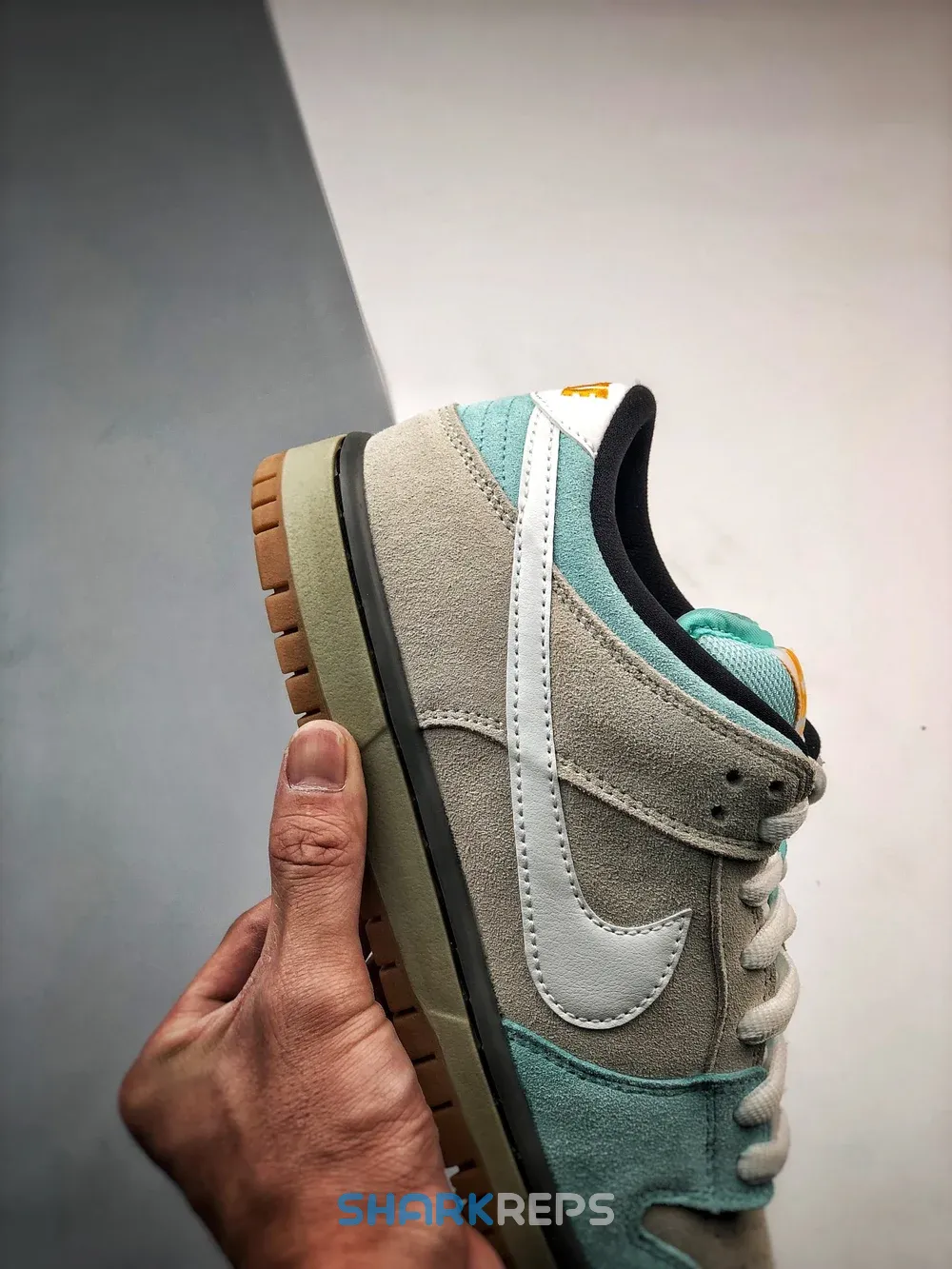 Nike SB collaborated with Florida’s Plus Skateshop for this Nike Dunk Low Pro SB ‘Gulf Of Mexico’ colorway. It boasts a full-suede upper with Glacier Ice and Light Ash Grey panels, offset by a crisp white Swoosh and laces. A hit of bright orange marks the tongue and heel branding, while black contrasts the inner lining and footbed. The grey trim above the midsole gives way to a gum rubber outsole.