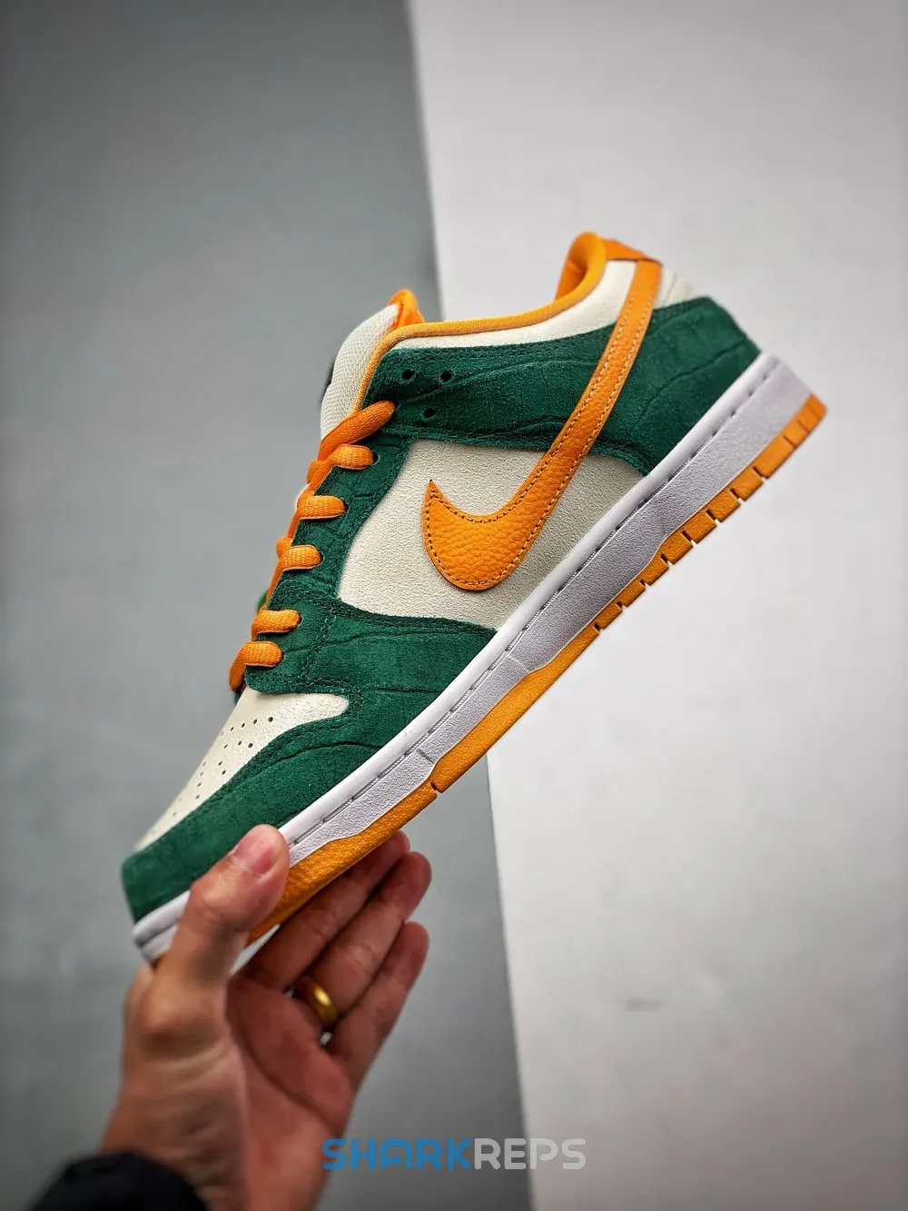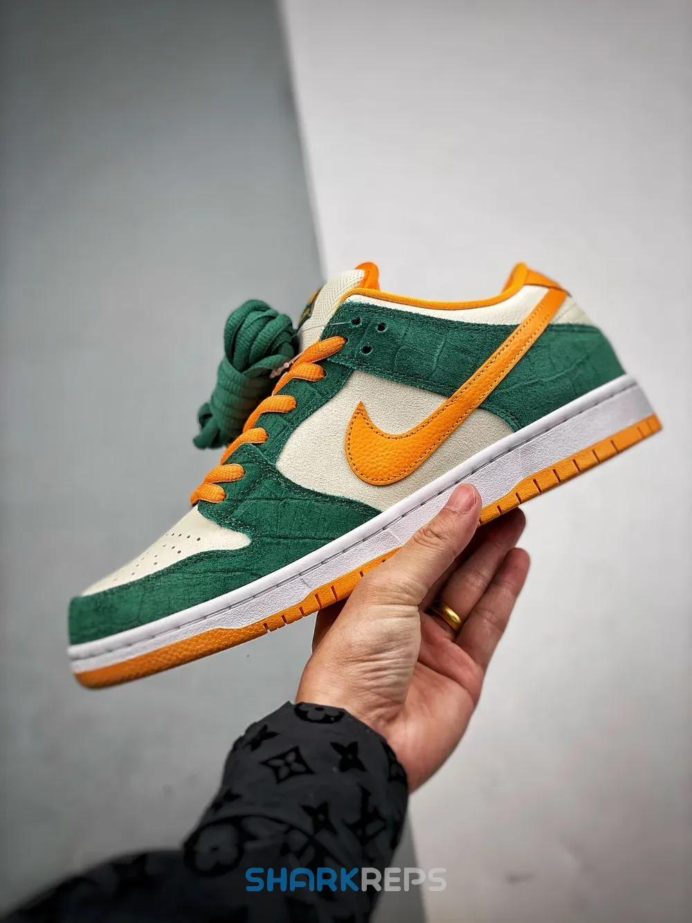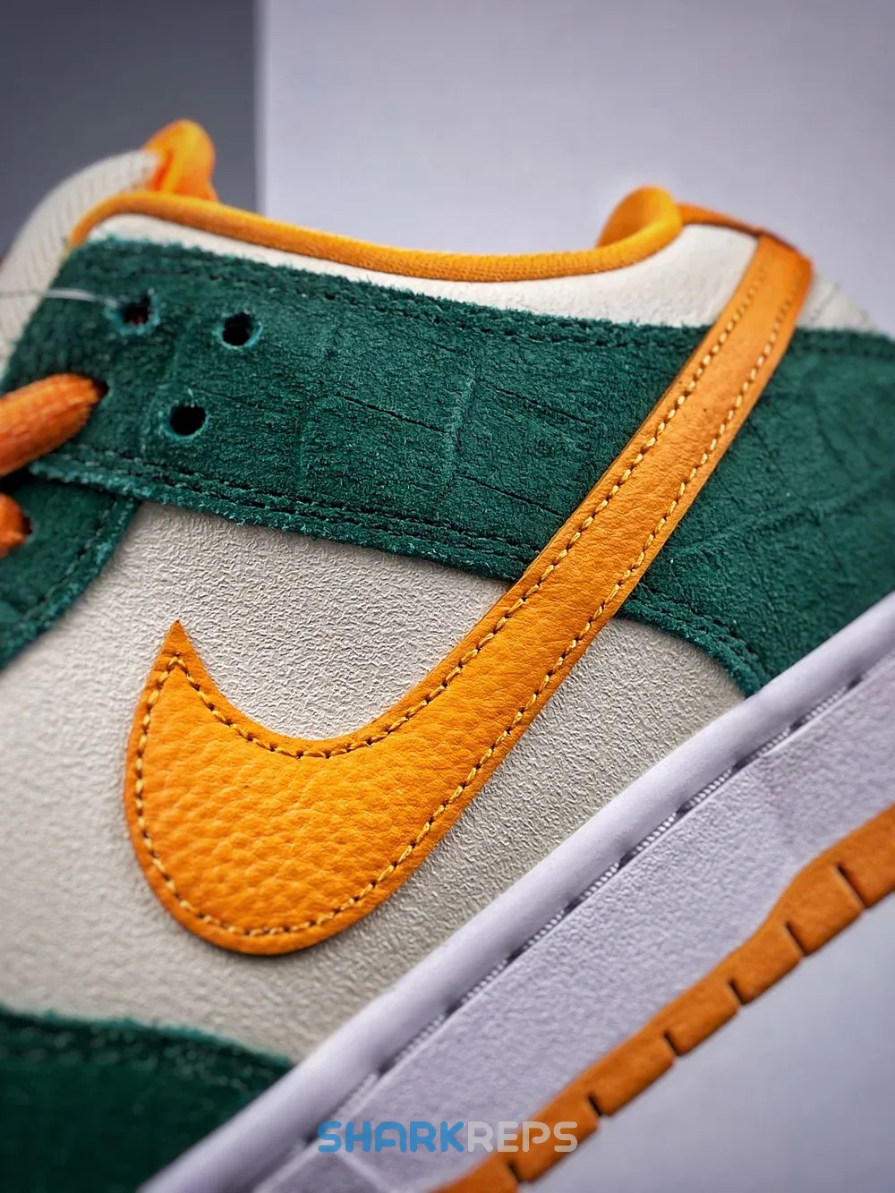 The Nike SB Dunk Low appears with a Legion Pine and Kumquat color scheme on the upper’s leather construction, while a crocodile-embossed etching emerges on the overlays for an elegant look. The Swoosh and heel tab take on a pebbled construction, while the sockliner features Zoom Air technology.