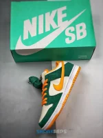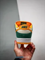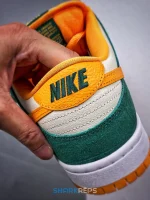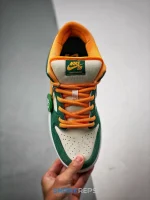 The Nike SB Dunk Low appears with a Legion Pine and Kumquat color scheme on the upper’s leather construction, while a crocodile-embossed etching emerges on the overlays for an elegant look. The Swoosh and heel tab take on a pebbled construction, while the sockliner features Zoom Air technology.