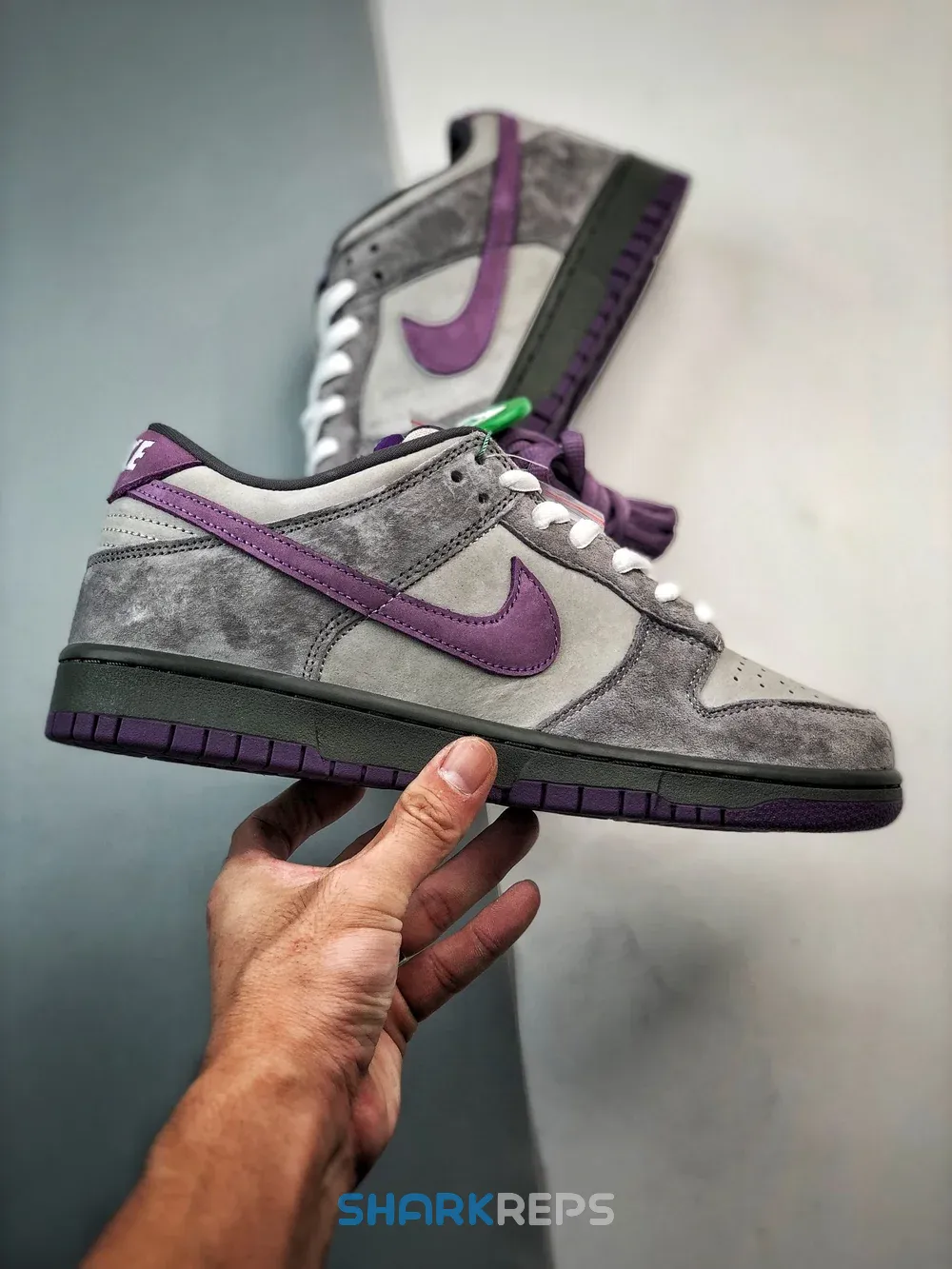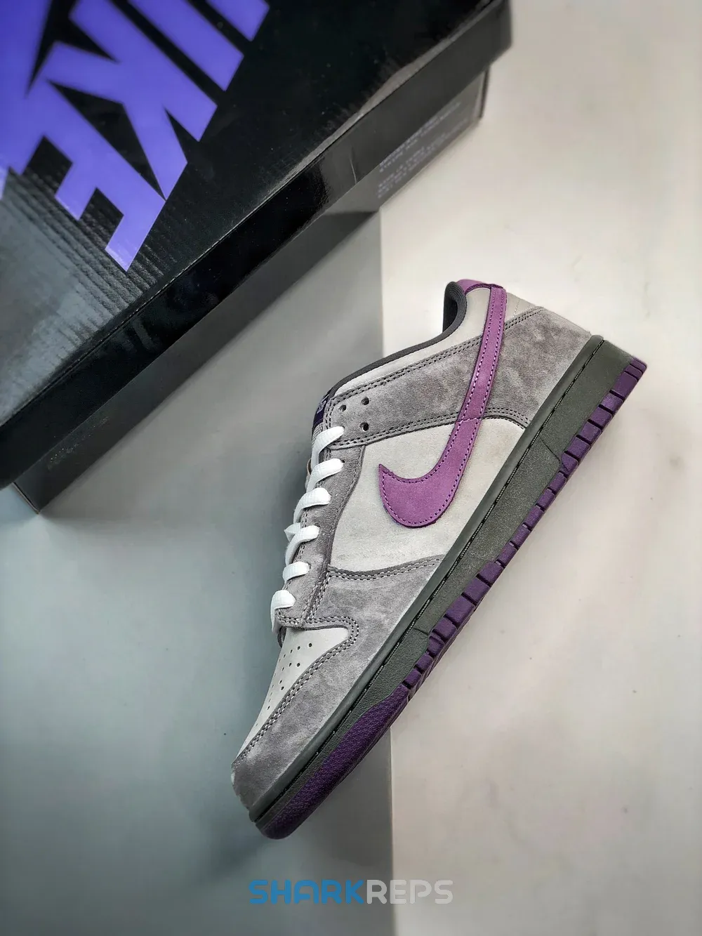 The Nike SB Dunk Low Pro SB ‘Purple Pigeon’ was released In 2006 and has a close resemblance to the ‘Pigeon’ Dunk since they share a grey base color. The ‘Purple Pigeon’ showcases a Light Graphite upper with a Violet Swoosh and outsole.