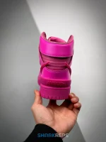Made in collaboration with the Tokyo-based fashion label, the AMBUSH x Dunk High ‘Cosmic Fuchsia’ celebrates the silhouette’s 35th anniversary with exaggerated detailing. The high-top features a leather upper in a monochromatic pink finish, highlighted by an extra-tall leather tongue and a molded Nike Swoosh with a tail end that extends past the actual shoe. Dual Nike and Ambush branding adorns the woven tongue tag.