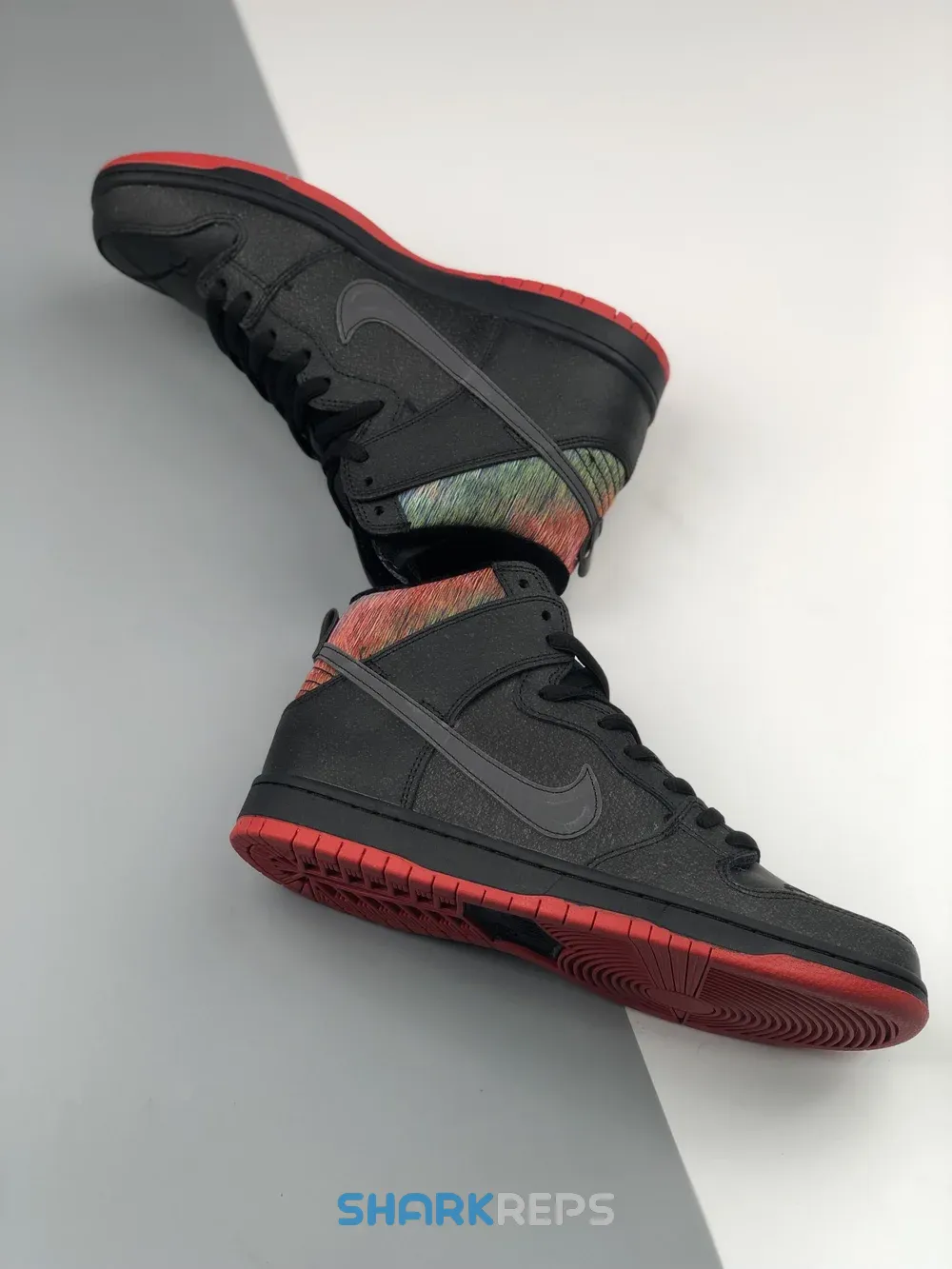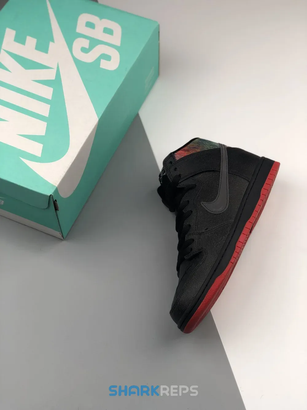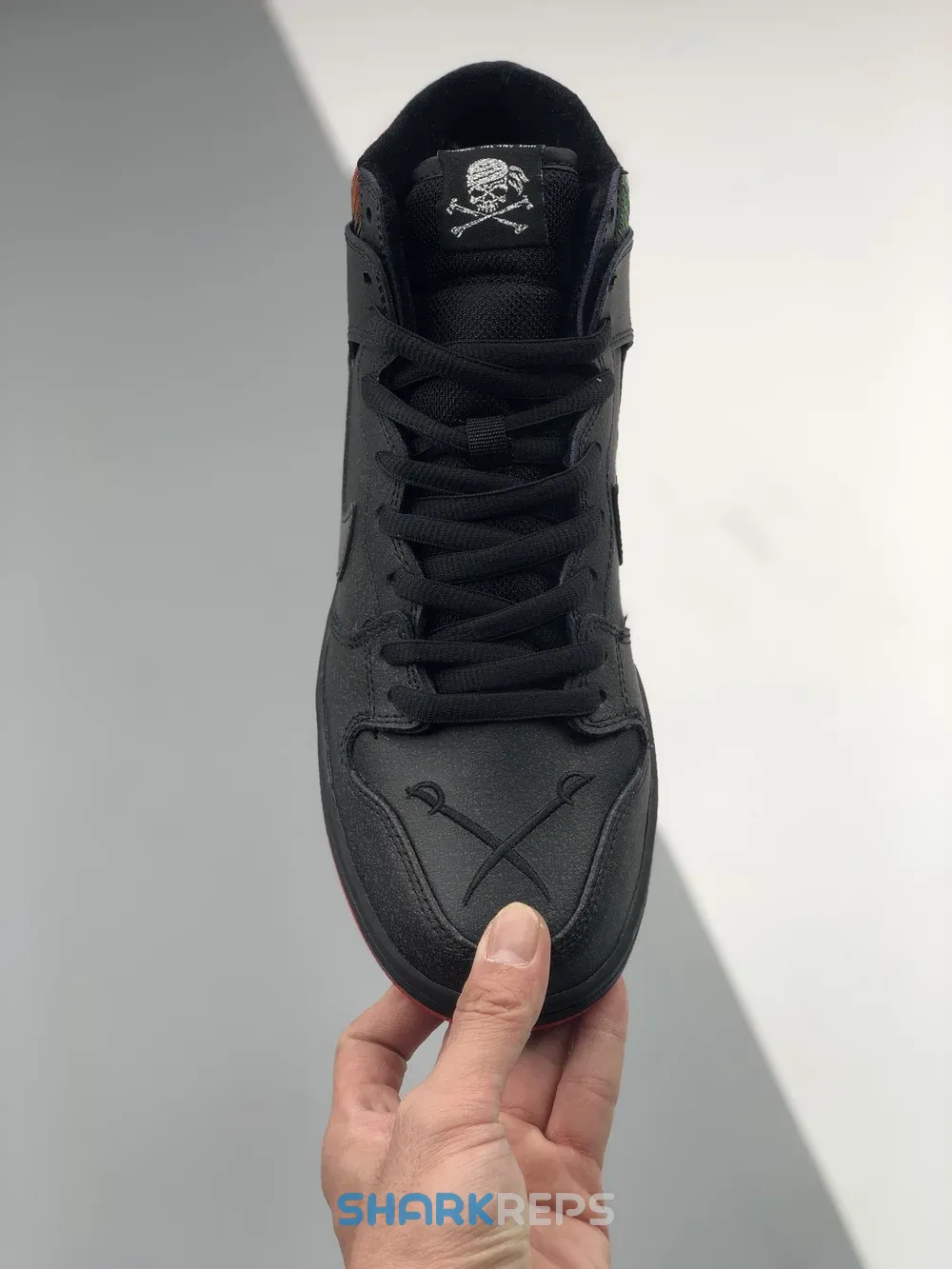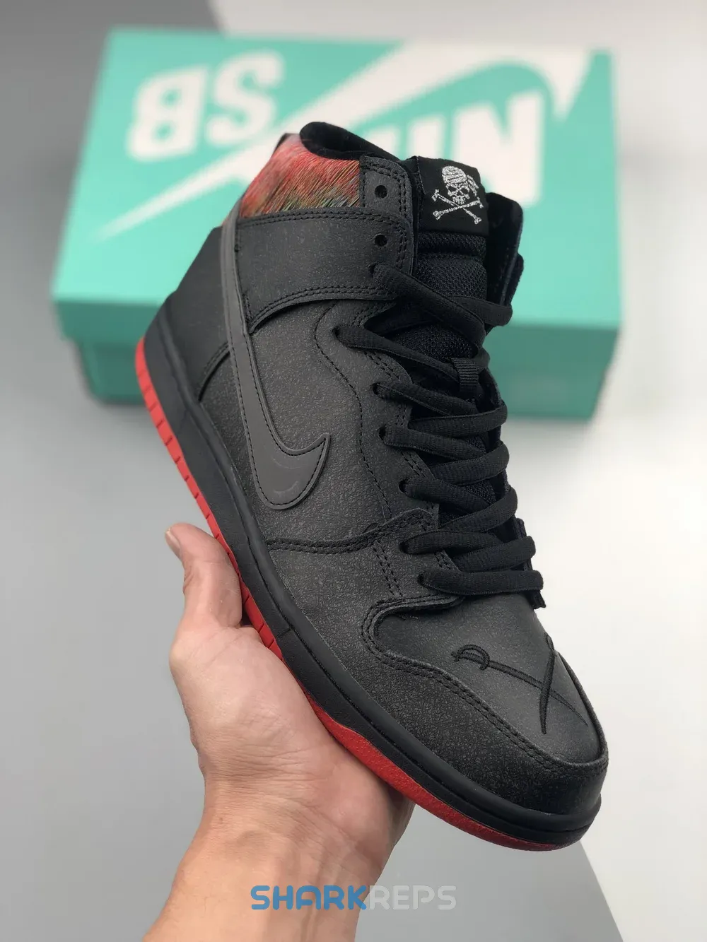 The SPoT x SB Dunk High Pro ‘Gasparilla’ released in February 2016 as a collaboration between Nike SB and the Tampa, Florida, skate shop. Inspired by the legend of the Spanish pirate nicknamed ‘Gasparilla,’ the high-top sports a black leather upper accented with a 3M Swoosh, multicolored threading on the heel panel and an embroidered saber on the toe box. A special box designed by artist Sean Cliver is made to resemble a pirate’s treasure chest.