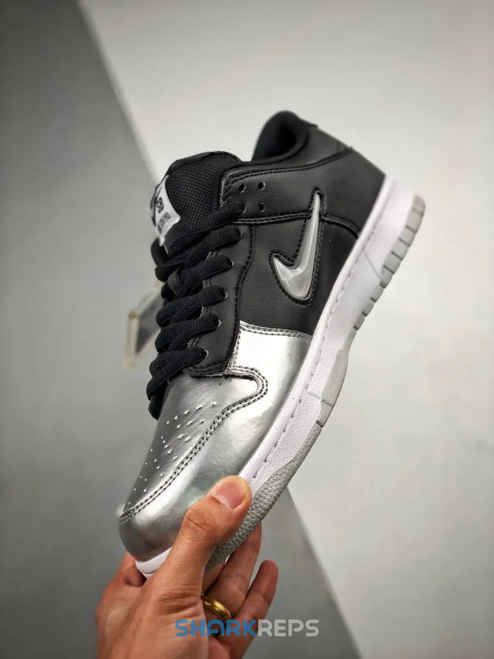 Introduced in September 2019, the Supreme x Nike SB Dunk Low sees the NY based skate brand work on the iconic skateboarding sneaker again. This iteration is outfitted in black leather and suede with a mesh tongue and metallic silver toe box for a unique color block. Jewel Swooshes are embedded into both sides, while a stitched ‘Supreme’ star logo is found on the lateral heel.