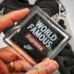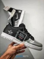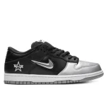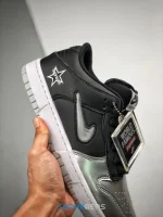 Introduced in September 2019, the Supreme x Nike SB Dunk Low sees the NY based skate brand work on the iconic skateboarding sneaker again. This iteration is outfitted in black leather and suede with a mesh tongue and metallic silver toe box for a unique color block. Jewel Swooshes are embedded into both sides, while a stitched ‘Supreme’ star logo is found on the lateral heel.