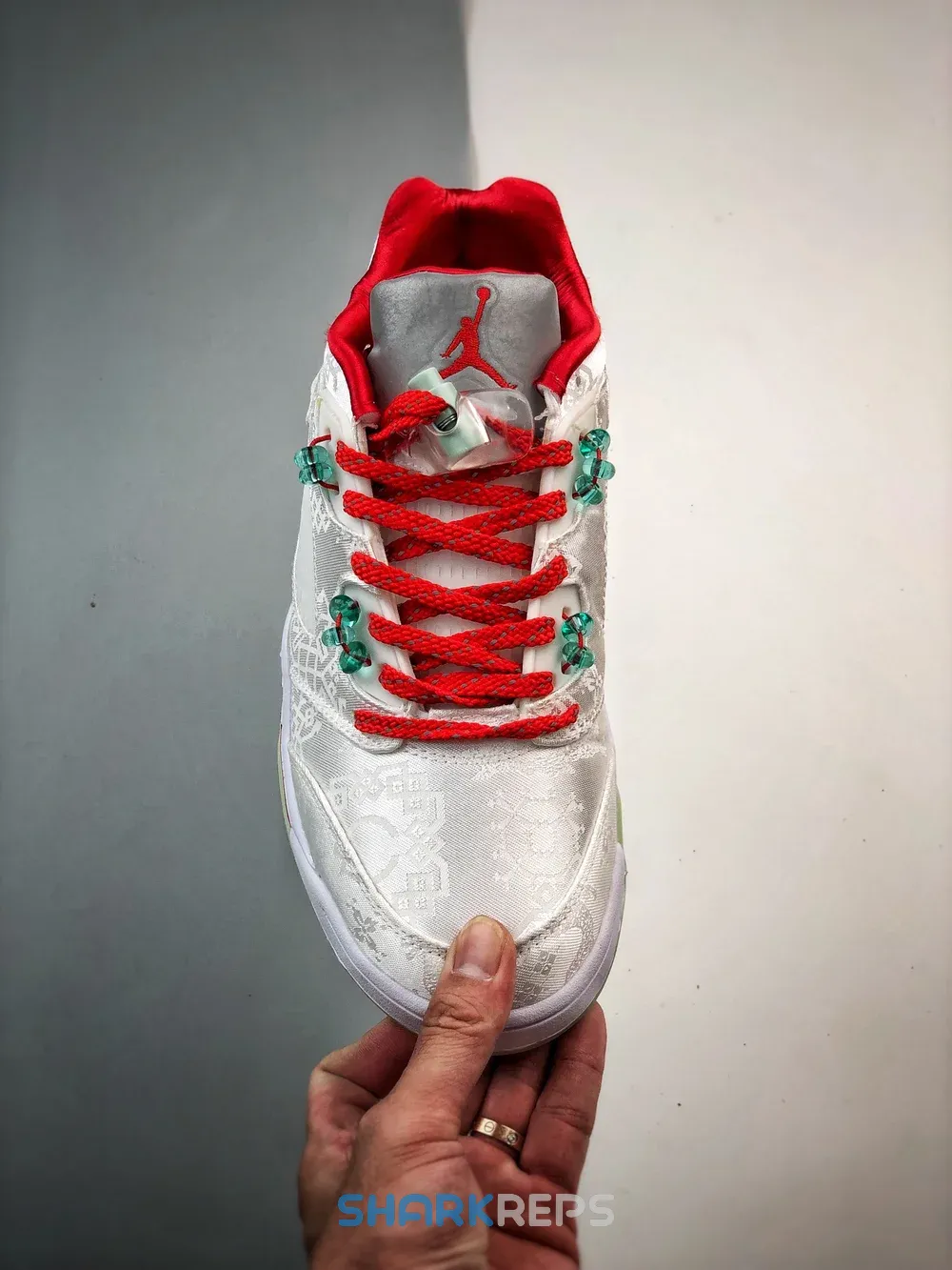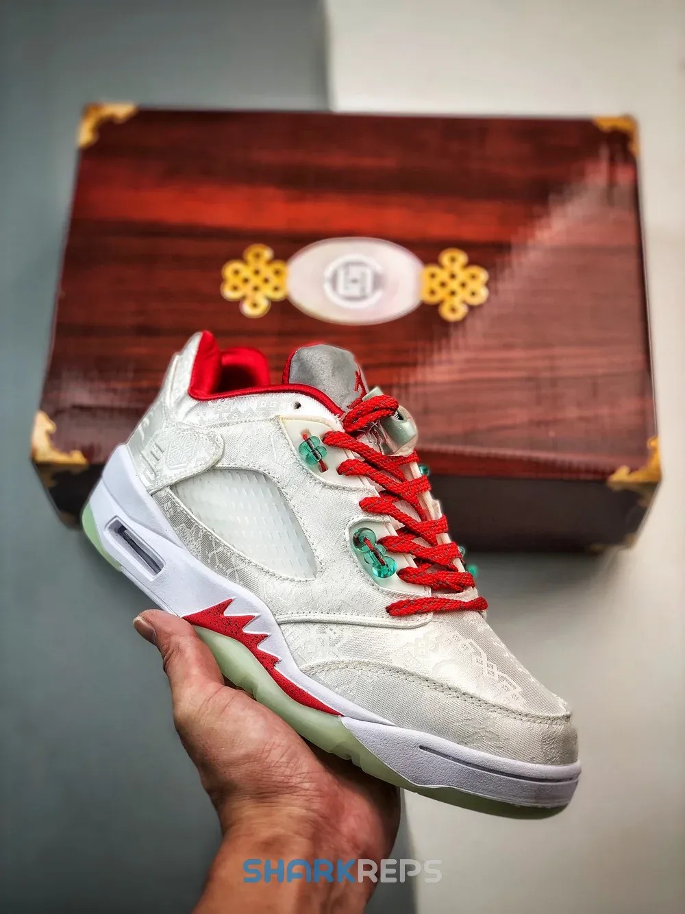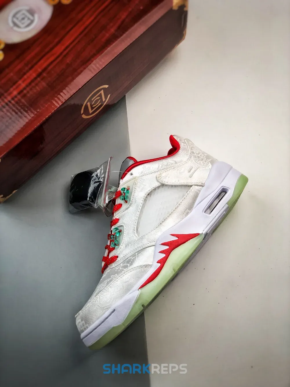 Introducing the Air Jordan 5 Low x CLOT ‘White Silk’ – a fusion of iconic street style and cultural heritage. Crafted with premium materials, these sneakers boast an elegant white silk upper adorned with intricate jade embroidery, paying homage to traditional Chinese artistry. The translucent outsole reveals a vibrant gradient, adding a touch of modernity to this classic silhouette. Experience comfort and style with every step, while showcasing the perfect blend of East and West.