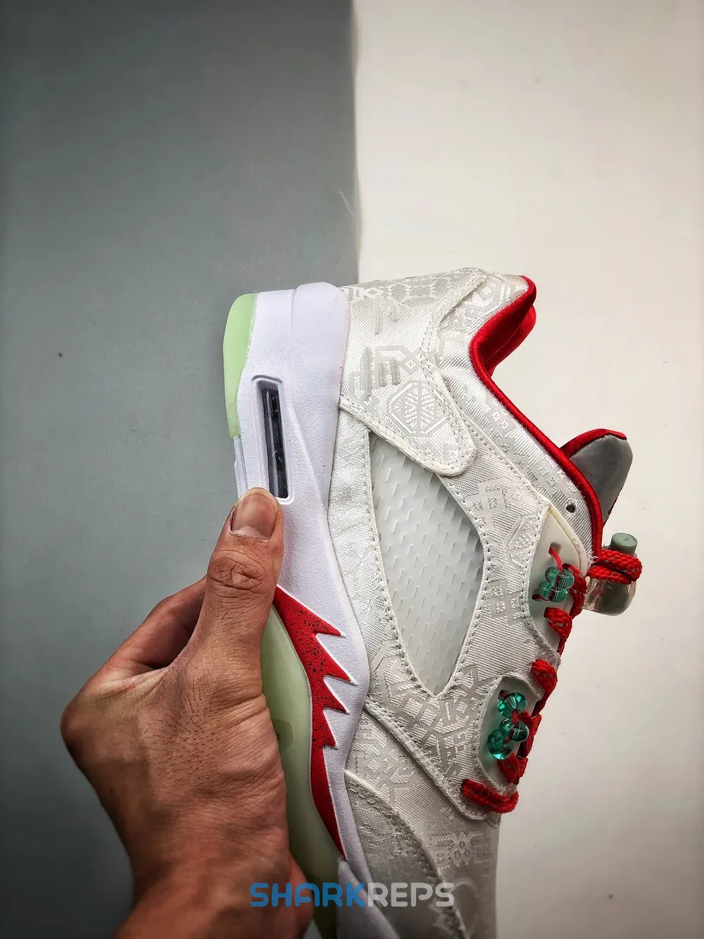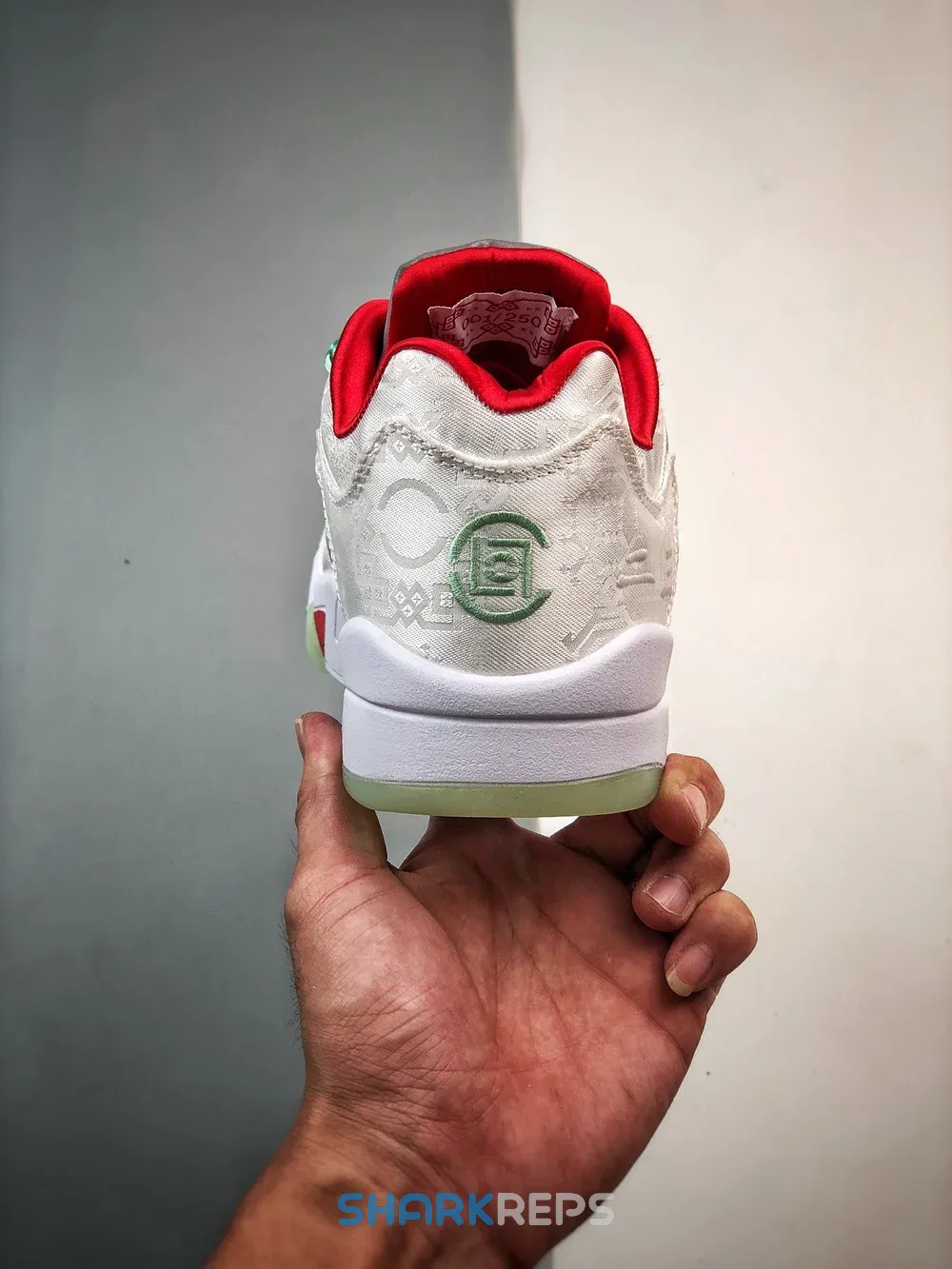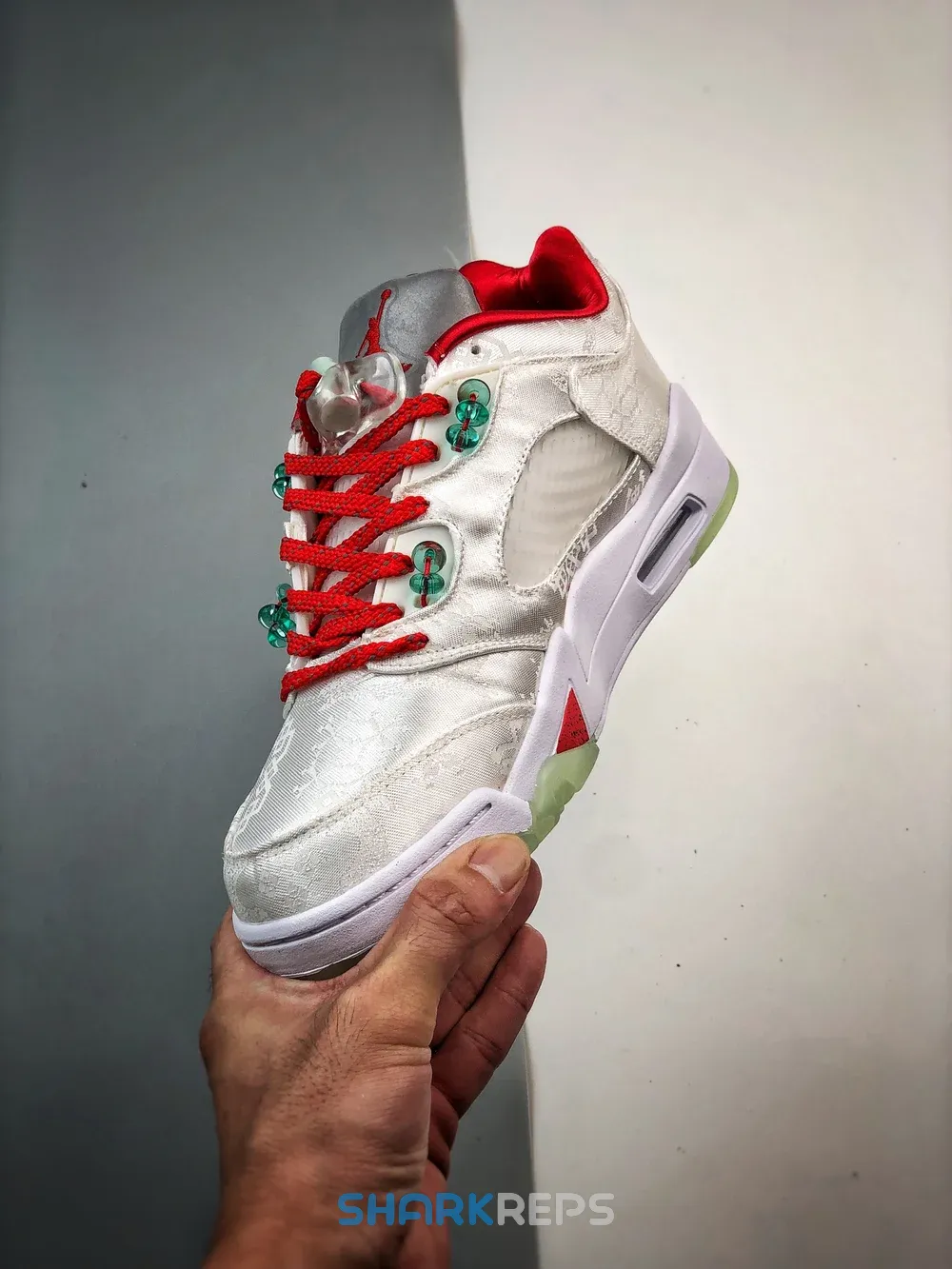 Introducing the Air Jordan 5 Low x CLOT ‘White Silk’ – a fusion of iconic street style and cultural heritage. Crafted with premium materials, these sneakers boast an elegant white silk upper adorned with intricate jade embroidery, paying homage to traditional Chinese artistry. The translucent outsole reveals a vibrant gradient, adding a touch of modernity to this classic silhouette. Experience comfort and style with every step, while showcasing the perfect blend of East and West.