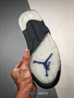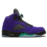 The Air Jordan 5 Retro ‘Alternate Grape’ delivers a variation on the silhouette’s classic OG colorway from 1990. The upper, outfitted entirely in purple suede, sits atop a black foam midsole with speckled shark tooth detailing in emerald green. The same hue appears on the lace locks and Jumpman branding atop the tongue, which is finished in a light-grabbing reflective finish. Additional Jumpman logo hits adorn the heel and translucent rubber outsole.