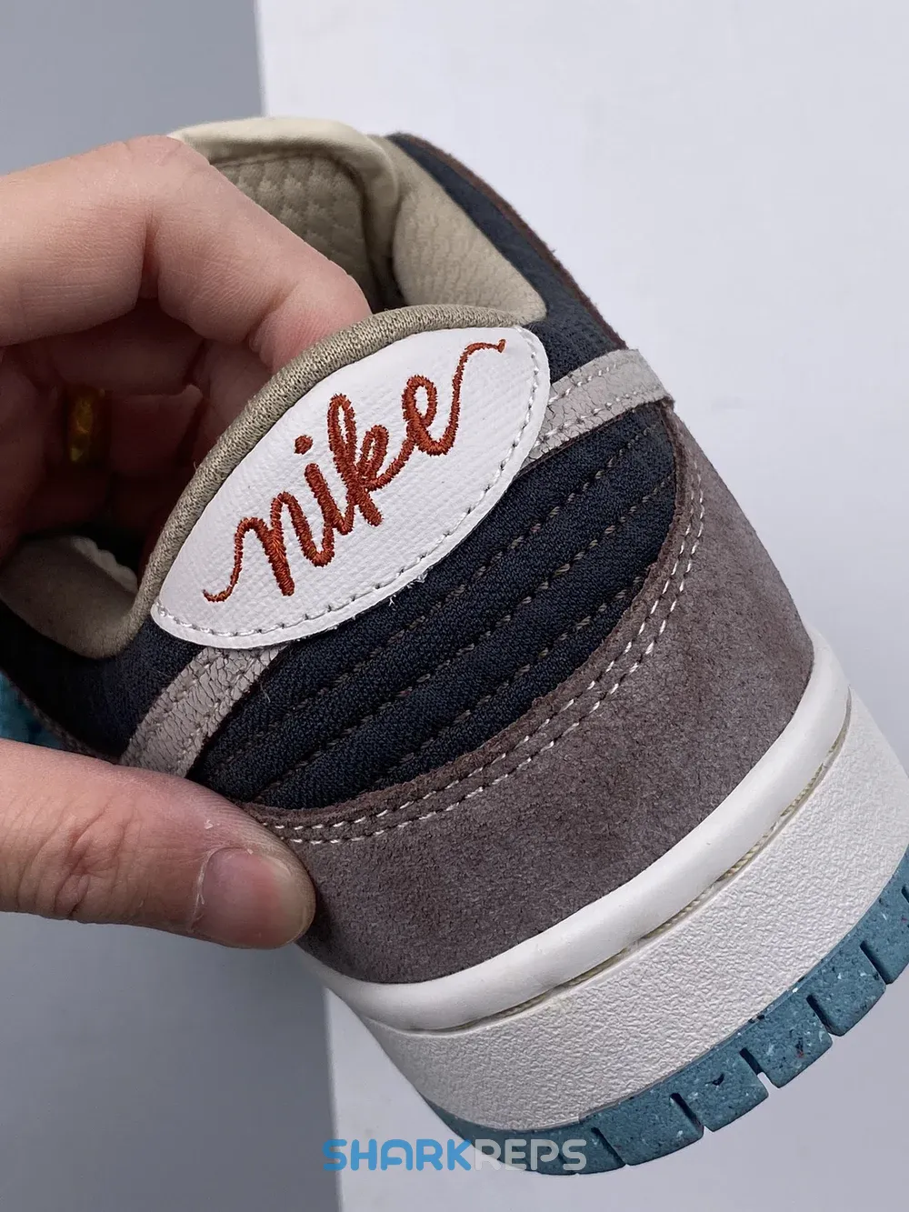The Nike Dunk Low SB ‘Big Money Savings’ takes inspiration from big box stores and their discounted wares. Braided rope laces secure the mixed-material upper, featuring a tan canvas toe box with silver brocade quarter panels and taupe suede overlays at the forefoot and heel. In addition to a cracked leather Swoosh in an ivory hue, branding elements include a teal-colored Nike SB tongue tag and ‘Nike’ inscribed in crimson script on the canvas back tab. The interior tongue is appended with a tear-off receipt that announces ‘Big Money Savings.’ The sneaker is underpinned by a turquoise-colored rubber outsole.