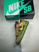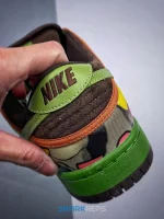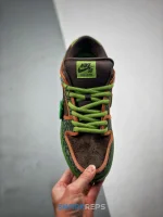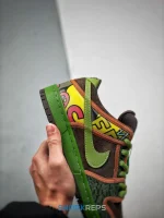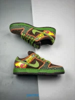 The Nike SB Dunk Low ‘De La Soul’ is a low-top remix of the 2005 high-top colorway designed in collaboration with alt-rap trio De La Soul. The design features a Baroque Brown suede upper with Altitude Green elephant print and vinyl graphic overlays inspired by the cover of their debut album 3 Feet High and Rising. Released in May 2015, the sneaker also comes with a green midsole and brown outsole.