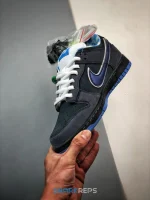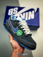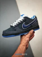 Designed in collaboration with New England retailer Concepts, the Dunk Low Premium SB ‘Blue Lobster’ takes inspiration from the crustacean of the same name, featuring a Nightshade leather base with speckled Dark Slate overlays. Special details include a blue and white plaid pattern on the lining and an elastic band wrapped around the forefoot—a nod to the traditional safety measure used to secure lobster claws.