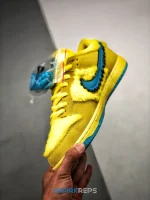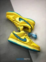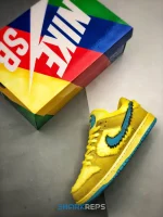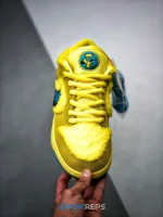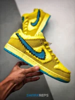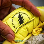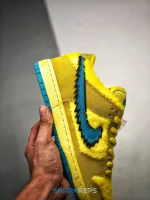 Developed in collaboration with the iconic San Francisco jam band, the Grateful Dead x Nike Dunk Low SB ‘Yellow Bear’ features a unique design inspired by the back cover of ‘History of the Grateful Dead, Volume One (Bear’s Choice),’ a live album originally released in 1973. A vibrant yellow finish is applied to the furry upper, fortified with tonal suede overlays and mounted atop a matching yellow foam midsole. Contrasting blue hits appear on the jagged Swoosh, rubber outsole and tongue, the latter furnished with a hidden stash pocket.