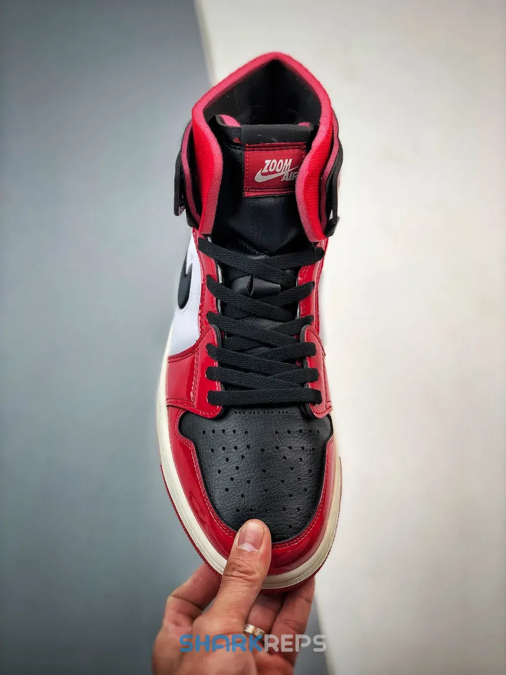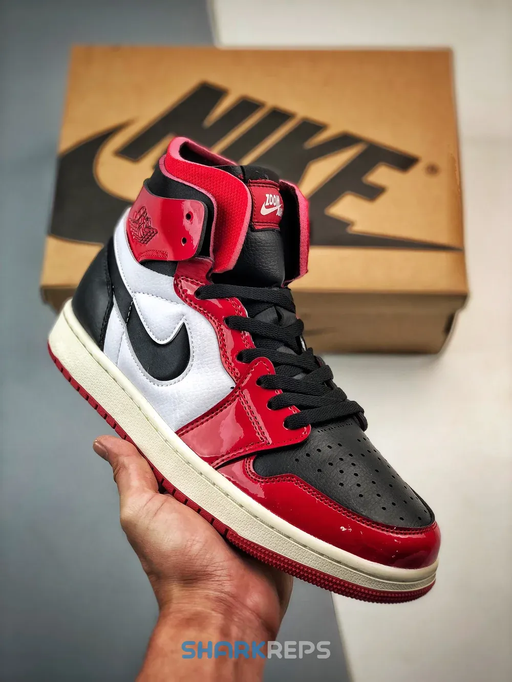 The Air Jordan 1 High Zoom Air CMFT Patent Chicago arrives in the classic Chicago Bulls colorway.