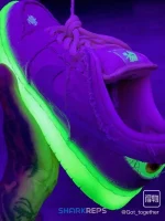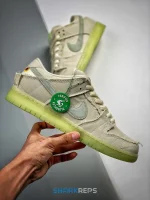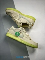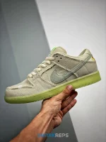 The Nike Dunk Low SB ‘Mummy’ celebrates Halloween with a unique design inspired by the classic celluloid monster. The off-white canvas upper, featuring tonal decorative stitching and frayed edges, can be torn away to reveal a bluish-grey suede underlay — the same material used on the signature Swoosh. The semi-translucent rubber cupsole glows in the dark, along with a back heel accented with a pair of pair of embroidered eyes. Additional details include an embroidered spider on the left toe box and an ancient Egyptian Eye of Horus graphic on the interior tongue.