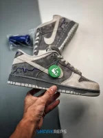 The Nike SB Dunk Low London is a rare and highly sought-after release that pays homage to one of the world’s most iconic cities. Released in 2004 as part of Nike’s “White Dunk: Evolution of an Icon” exhibition series, this soft grey and magnet Dunk Low represents the minimalist and understated style associated with London. The design features a clean all-grey upper, with subtle branding and a small embroidered outline of the River Thames near the heel. This minimalist approach has made the London Dunk one of the most elusive and respected pairs in the Nike SB line.