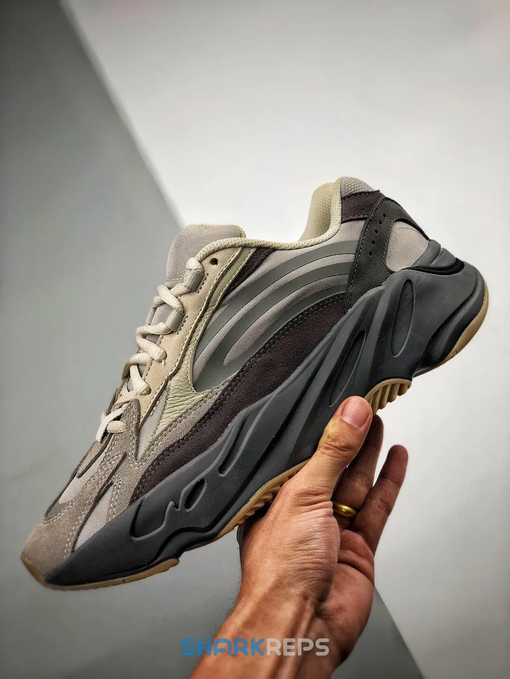 The Yeezy Boost 700 V2 is the striking follow up to the Yeezy 700 which originally debuted at Kanye West’s 2017 Yeezy Season 5 show. The V2 is more aerodynamic in appearance, with sleek, reflective overlays that draw the eye in. This rendition, the Yeezy Boost 700 V2 ‘Tephra’ sneaker, features a mesh and suede upper with subdued natural tones, culminating in deeper hues on the midsole. This version reprises the 700’s chunky sole, concealing full-length adidas Boost cushioning, underscored by gum-rubber tread.