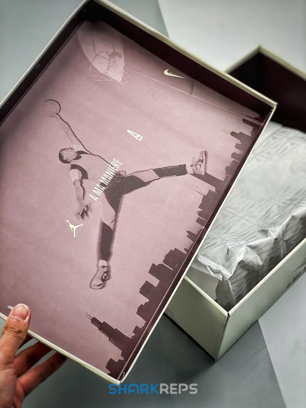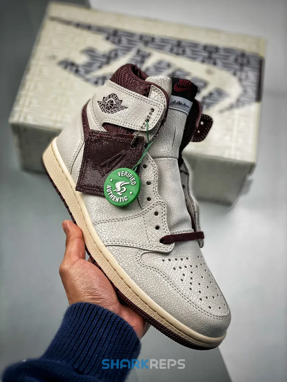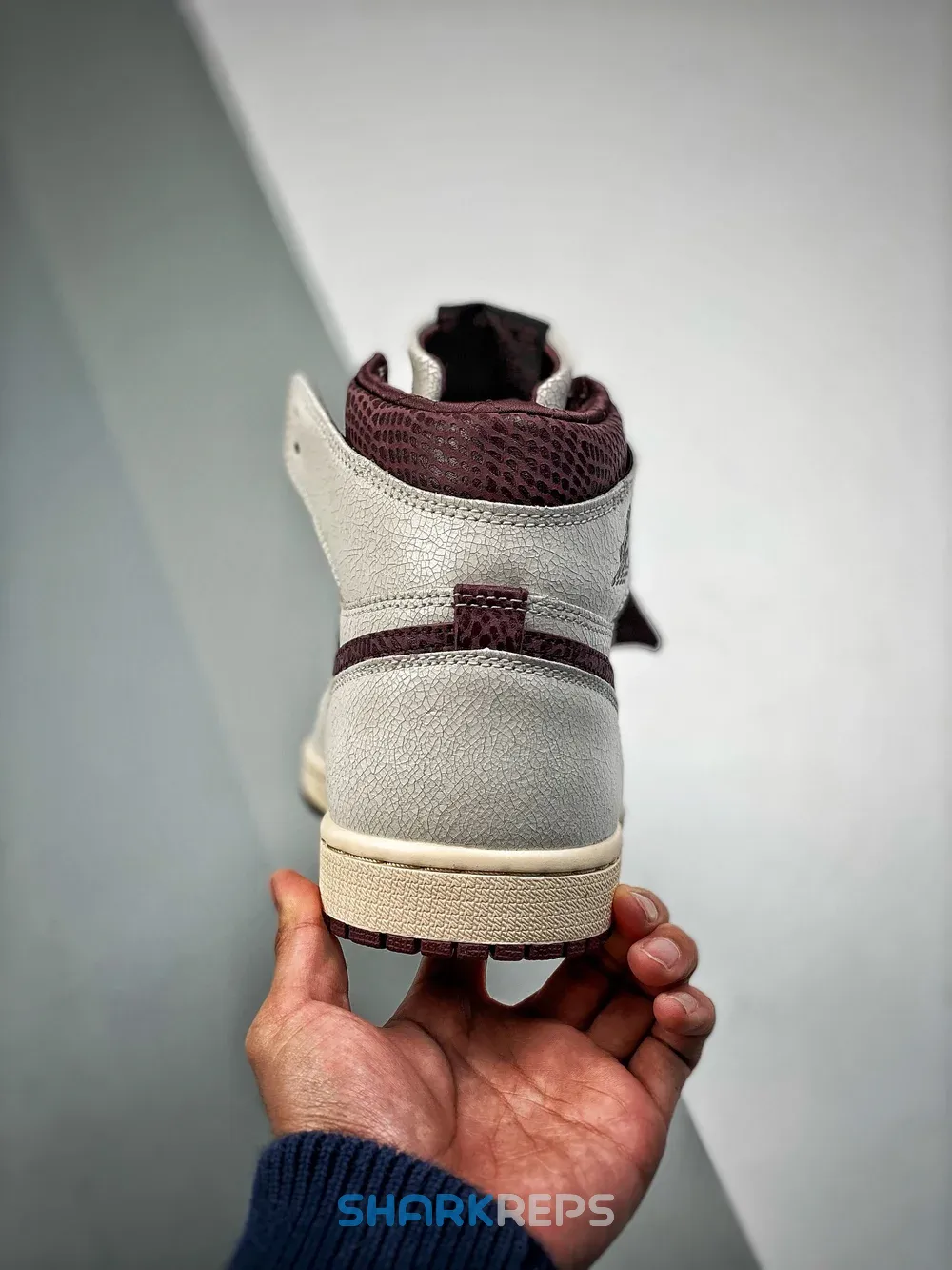 The Air Jordan 1 A Ma Maniére features a premium cracked leather upper with burgundy reptilian-textural leather collars and Swooshes. Silky quilted lining and custom woven tongue and insole labels add a sense of luxury. At the base, a yellowed sole provides a vintage feel to complete the design.