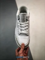 Tinker Hatfield’s Air Jordan 3 appears in its simplest form, featuring an all-white leather makeup that’s blocked with a tonal elephant print on the toe and heel. By foregoing silver accents on the eyelets and the actual Pure Money stitching on the tongue, and including a translucent blue outsole as an understated nuance, the Triple-White features subtle differences from 2007’s ‘Pure Money’ release.