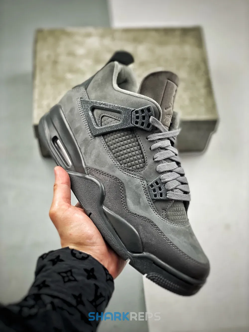 The Air Jordan 4 Retro SE ‘Wet Cement’ also known as ‘Paris Olympics’ drapes the classic silhouette in a neutral monochrome design in honor of the 2024 Summer Olympics. Varying shades of grey are applied to the nubuck upper, featuring a suede forefoot overlay and a debossed grid pattern on the quarter panel. Speckled detailing covers the TPU support wings and molded back tab, marked with a raised Jumpman icon. A second Jumpman logo decorates the tongue. The sneaker sits atop a dark grey polyurethane midsole with visible Air-sole cushioning in the heel.