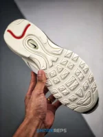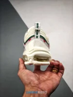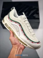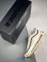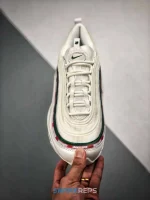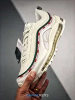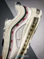 The Undefeated x Air Max 97 OG ‘Sail’ pays tribute to Italy’s special relationship with the Air Max 97. The Gucci-inspired design features a white-based upper, white patent leather mudguard, and a Gucci-inspired Gorge Green/Speed Red wavy side panel stripe. Undefeated branding runs the length of the red stripe, and the brand’s tally logo hits up the insole. Released in September 2017 alongside a ‘Black’ colorway, the sneaker celebrates the 20th anniversary of the Air Max 97 and the LA boutique’s 15th year serving West Coast sneakerheads.