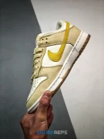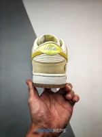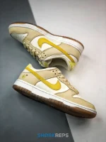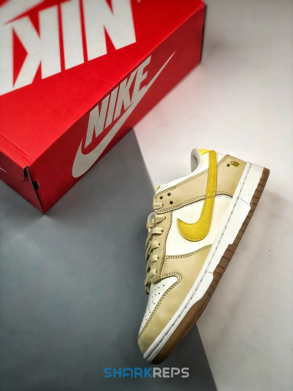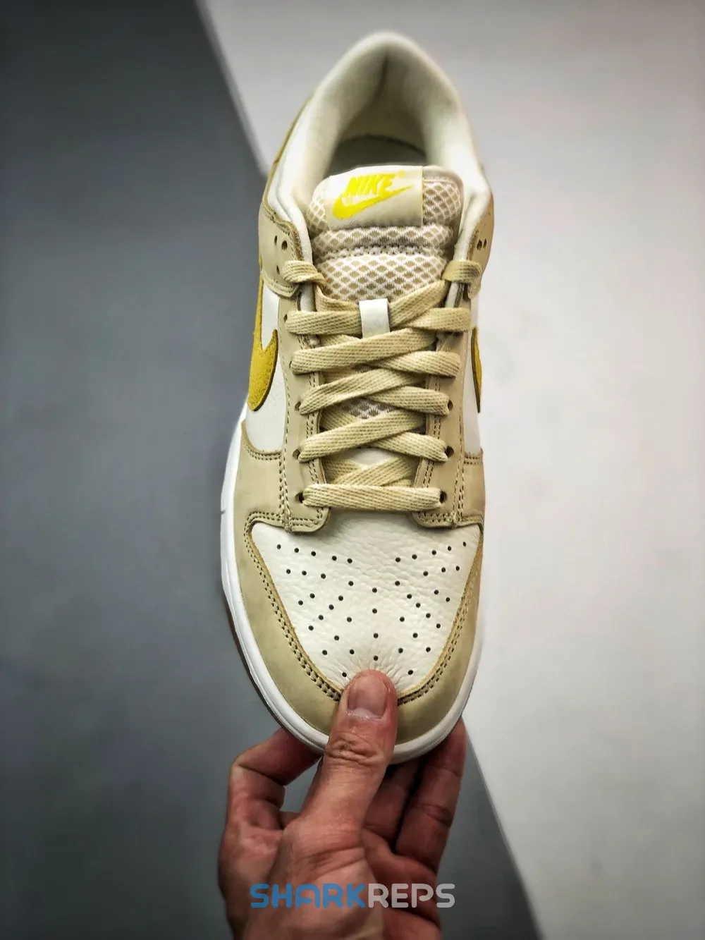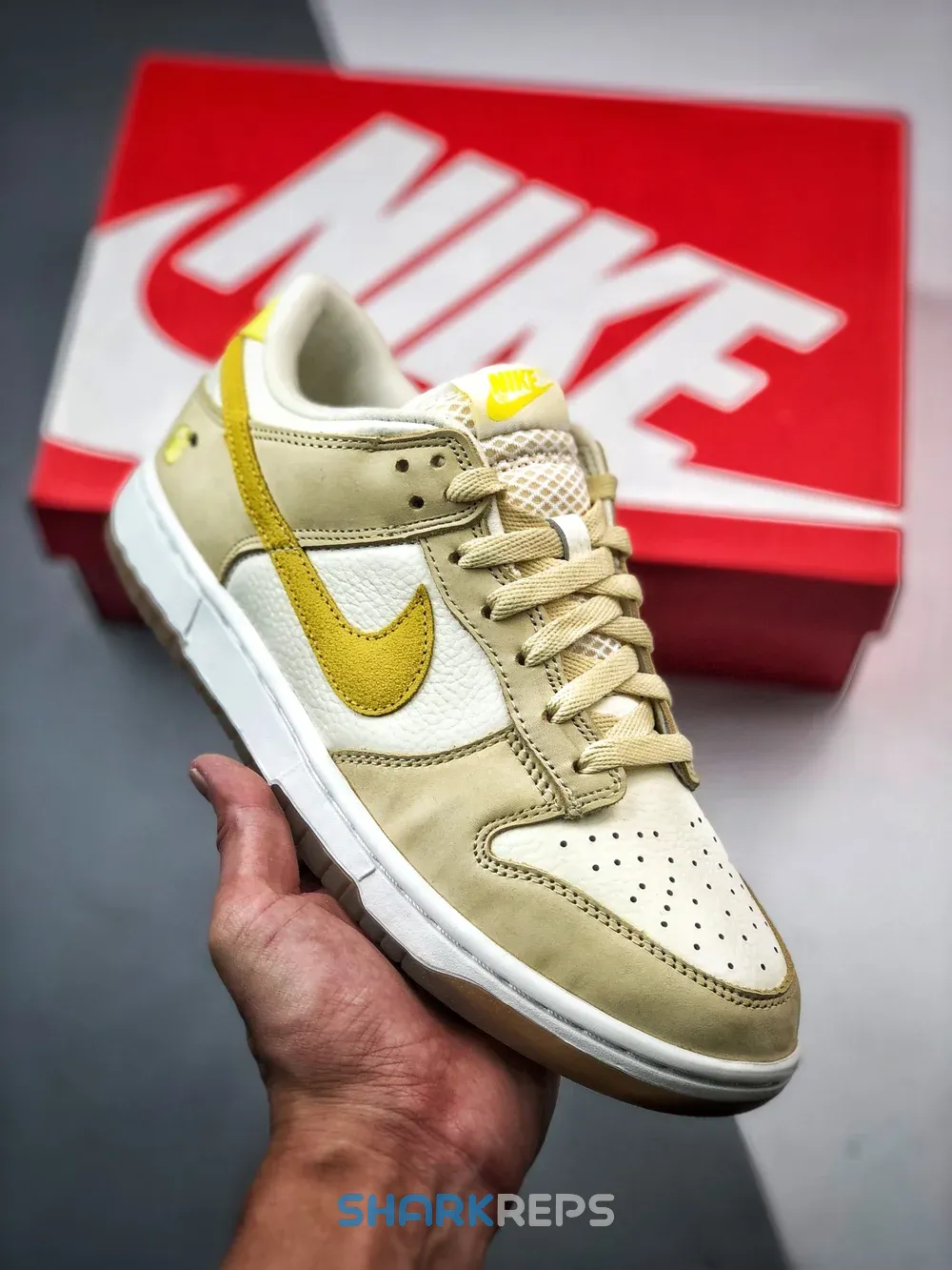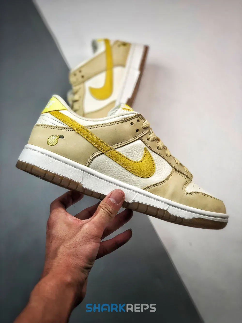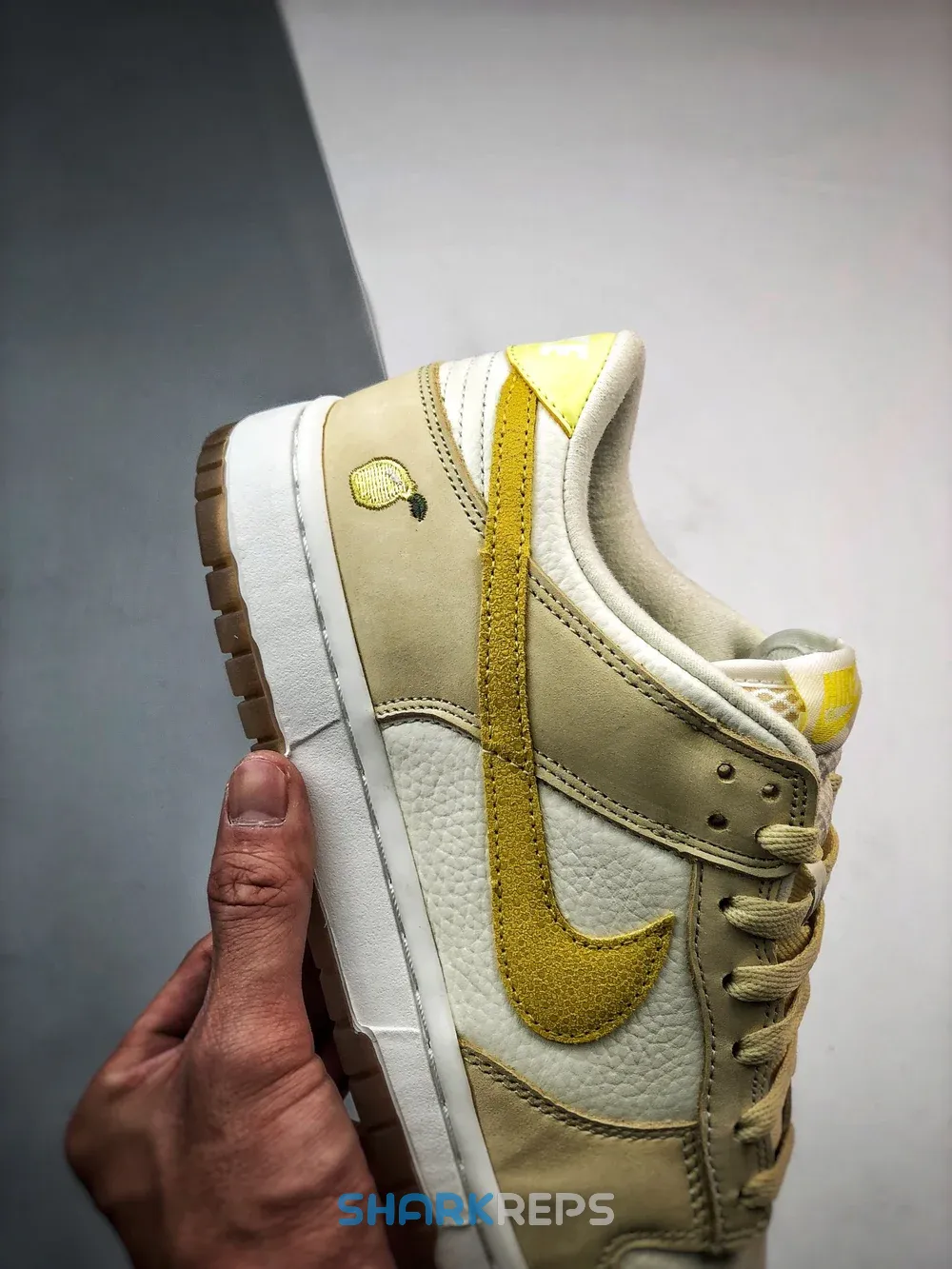 The Nike women’s Dunk Low ‘Lemon Drop’ gives the ‘80s hoops shoe a summery makeover. The sneaker utilizes a white tumbled leather upper with subdued yellow overlays that recall the color of lemon flesh, while a zestier shade of yellow is applied to the rind-like leather Swoosh. An overt nod to the citrus fruit takes the form of an embroidered graphic on the lateral heel. Additional unique details include a breathable open-mesh tongue and translucent rubber outsole.
