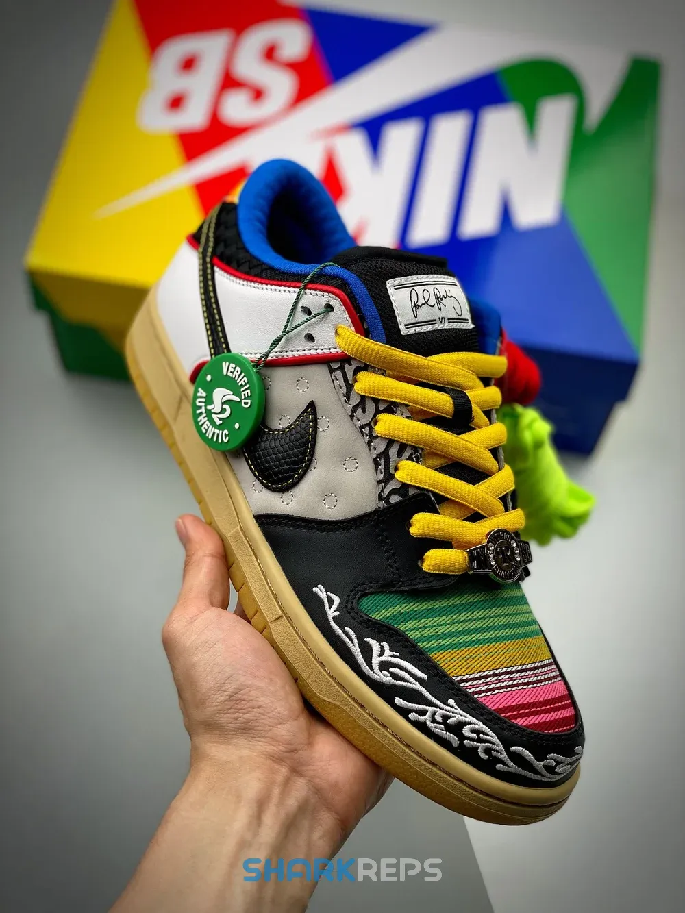The Nike Dunk Low SB ‘What The Paul’ celebrates the Swoosh’s longstanding partnership with Paul Rodriguez Jr., the first skateboarder to land his own signature Nike shoe. Each of the mismatched shoes is a greatest-hits medley featuring distinctive colors, textures and materials culled from P-Rod’s signature line. Multiple details are drawn from various colorways of the P-Rod 1, including the J-Rod’s elephant print overlays and toe boxes that reference the ‘Mexican Blanket’ and ‘Stash’ editions. Additional highlights include the P-Rod 2’s quilted lining and a metallic lace jewel taken from the athlete’s Mexico-themed SB Dunk High from 2020.
