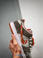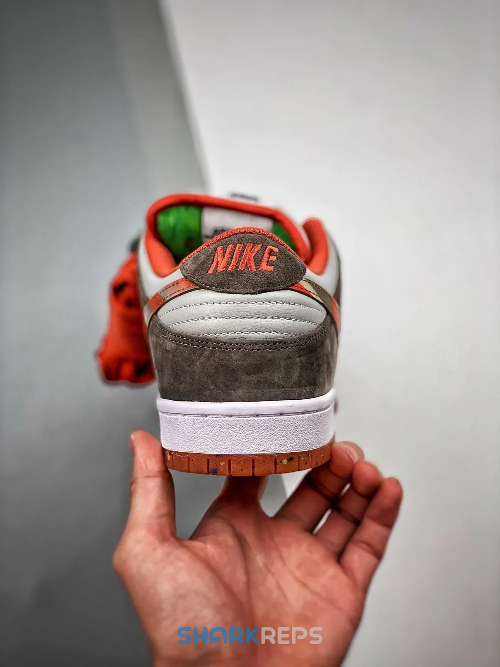 The Crushed D.C. x Nike Dunk Low SB ‘Golden Hour’ presents the Washington D.C. skate shop’s interpretation of the timeless silhouette. The low-profile upper is outfitted in light grey tumbled leather with brown suede overlays at the forefoot and heel. Sweeping across the side panel, the signature Swoosh is updated with a marbled finish in orange and grey. Stuffed tongues display dual-branded tags on the exterior side, while the interior side is lined in green mesh with custom Crushed Skateshop tags. Underfoot, the speckled orange rubber outsole is made in part with Nike Grind.