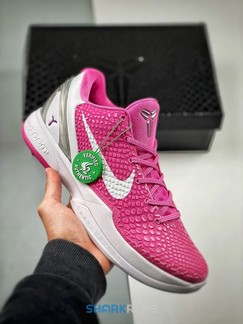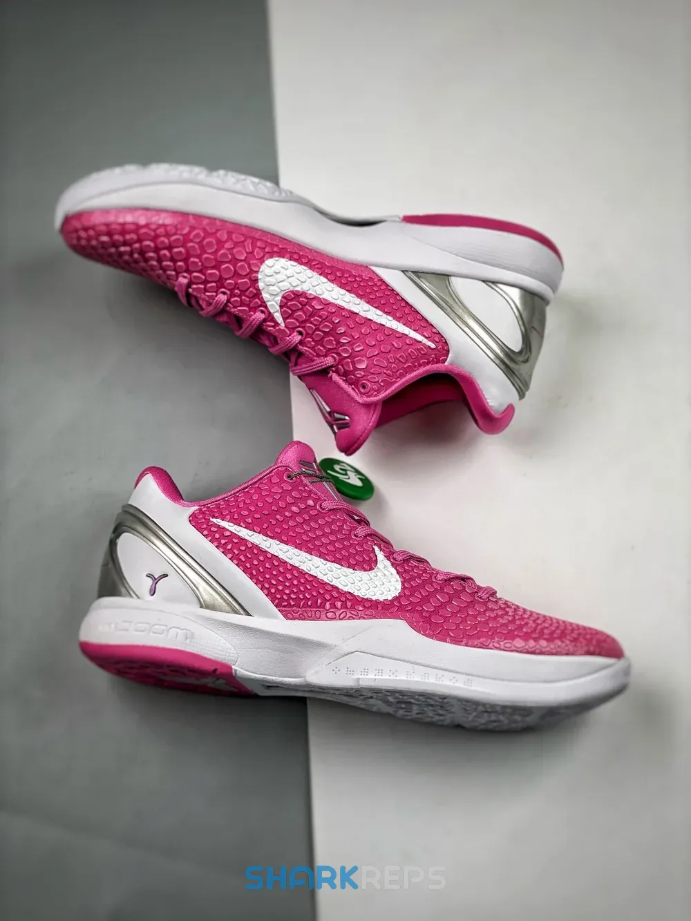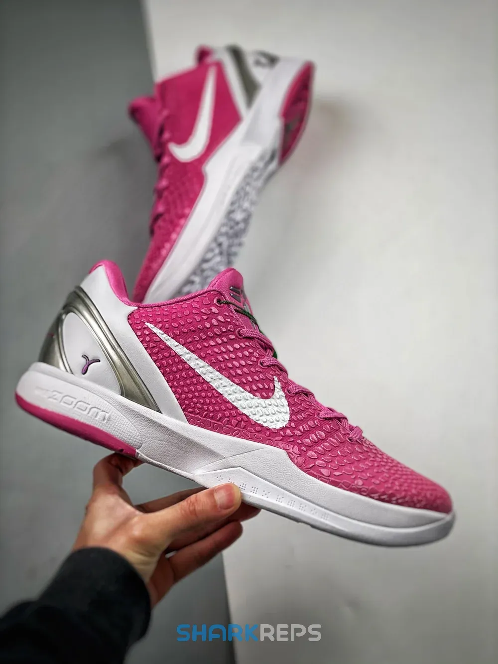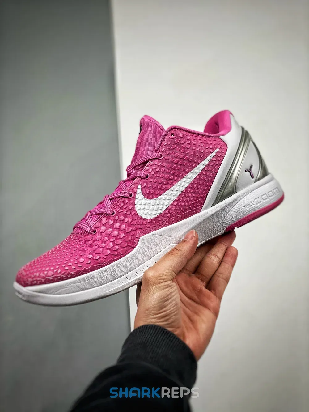In August 2011, Nike did its part to raise breast cancer awareness, donating all proceeds from a series of ‘Think Pink’ silhouettes including this Zoom Kobe 6. The “snakeskin” design is dressed in a bold Pinkfire hue with hits of metallic silver. A single pink ribbon logo at the heel of each shoe pays tribute to the cause and represents the strength of women worldwide.