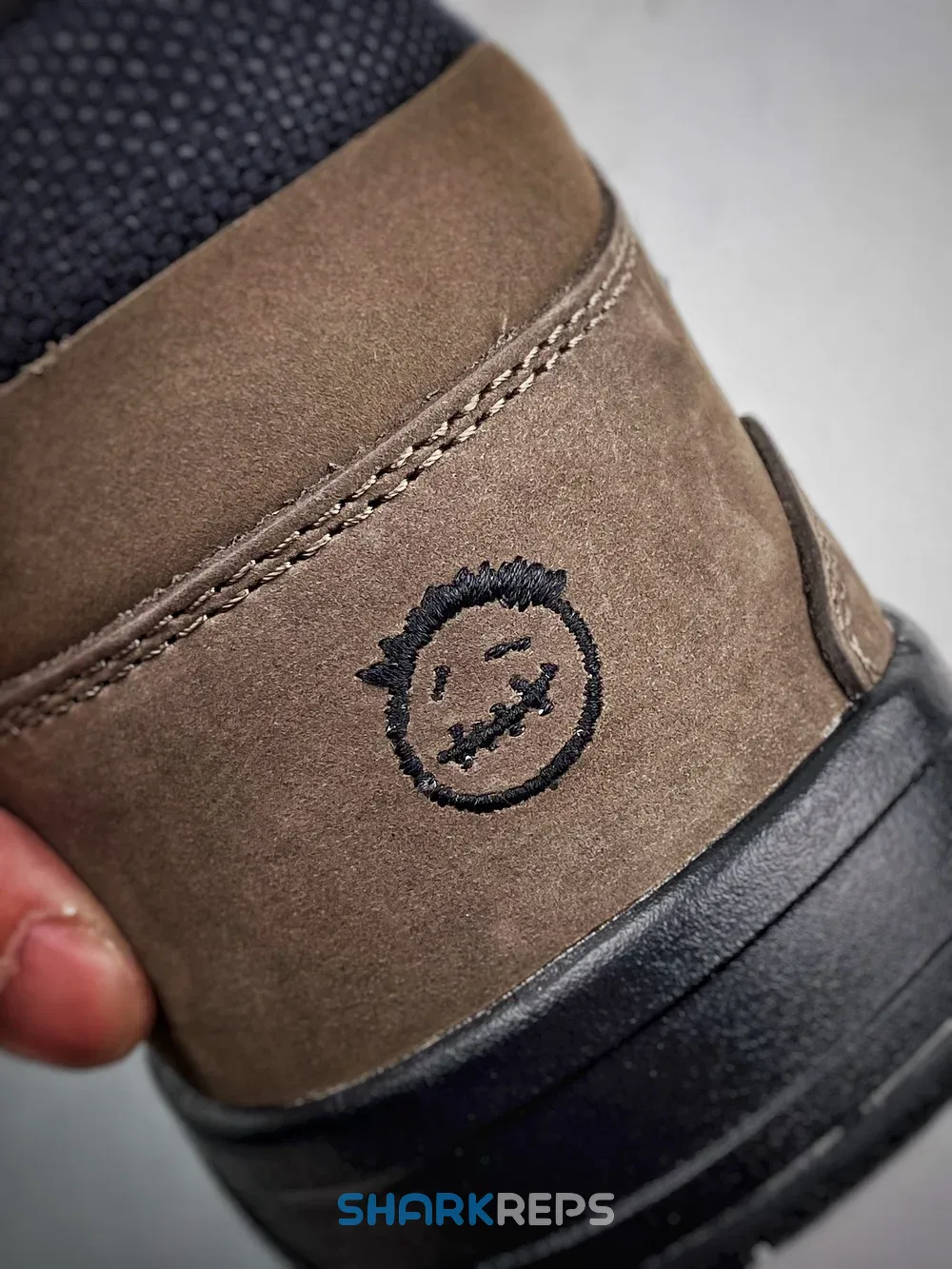 The Travis Scott x Jordan Jumpman Jack TR ‘Dark Mocha’ brings muted earth tones to Travis Scott’s debut signature shoe. La Flame’s signature reverse Swoosh, rendered in black suede, adorns the lateral side of an upper crafted from breathable black canvas with brown nubuck overlays. Tonal Jumpman branding decorates the tongue, while the Cactus Jack smiley logo appears on the back heel. ‘TS’ is embroidered on the adjustable forefoot strap. Underfoot, an oversized ‘Jack’ graphic is scrawled across the black rubber outsole, which wraps up the matching black foam midsole for added durability and traction.